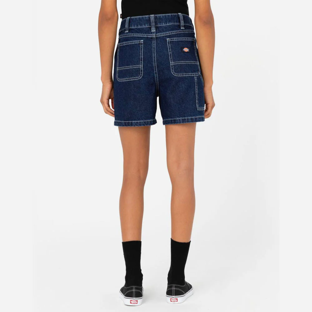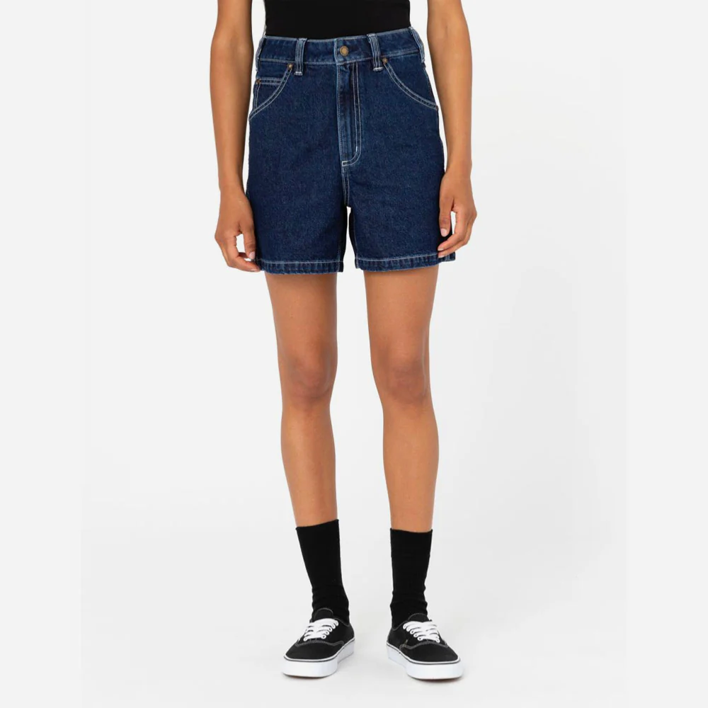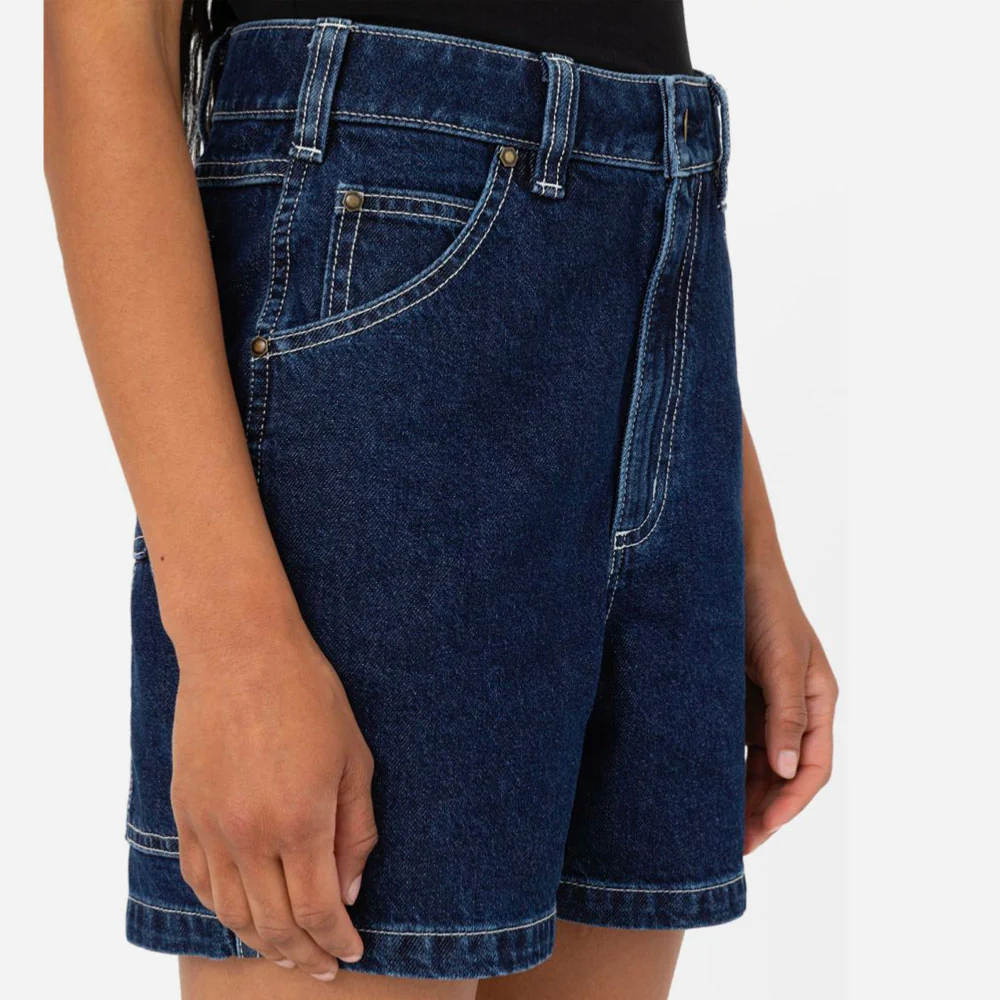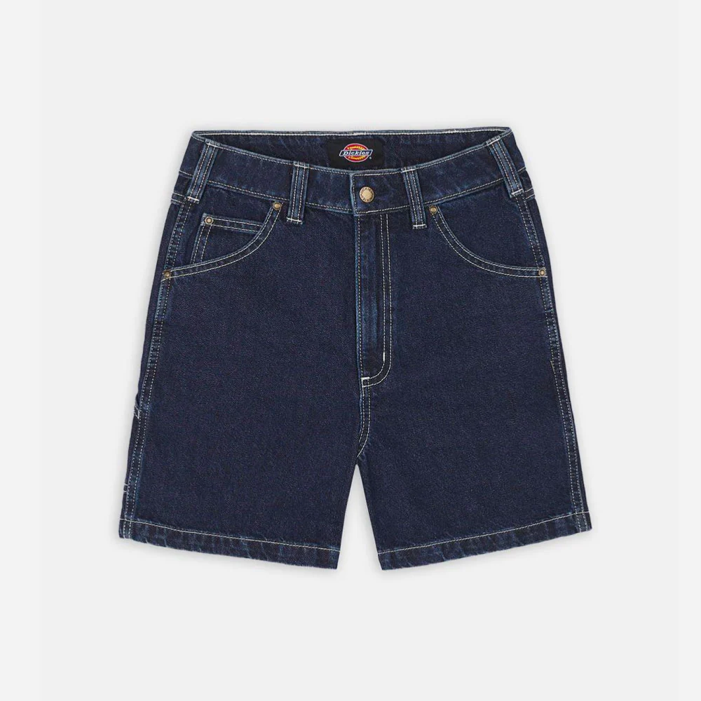 Short en jean coupe droite taille haute, avec plusieurs poches utilitaire. Fabriqué dans un denim résistant 350g avec des coutures contrastantes. Logo Dickies sur la poche arrière