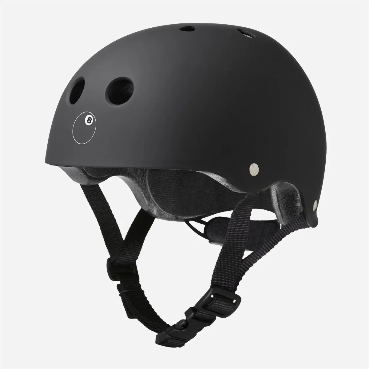 Casque de protection Eight Ball, doté d’une la coque extérieure en ABS absorbant les chocs, de 11 aérations ouvertes, d’une doublure en mousse et d’une molette de réglage pour maximiser les maintient et le confort.