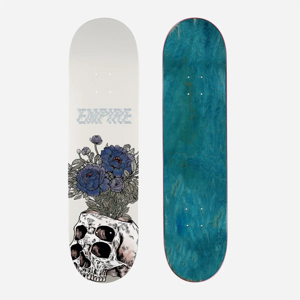 Planche de skateboard Empire 7-plis en bois d’érable canadien et résine époxy. Shape classique avec tale et nose large. Medium concave. Visuel par Mr.MRRS. Livrée avec une feuille de grip.