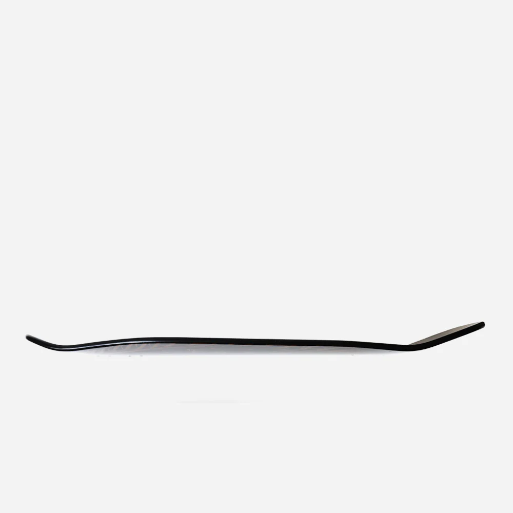 Planche de skateboard Evisen 7-plis en bois d’érable canadien et résine époxy. Shape particulier avec nose étroit et tail carré marqué.