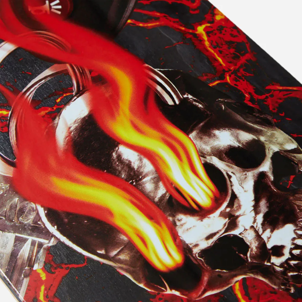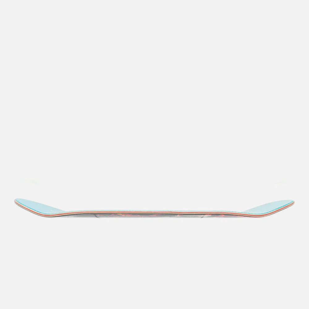 Planche de skateboard Evisen 7-plis en bois d’érable canadien et résine époxy. Shape particulier avec nose pointu et tail carré fort.