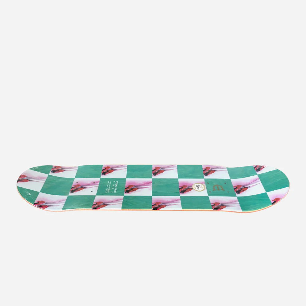 Planche de skateboard Evisen 7-plis en bois d’érable canadien et résine époxy. Shape classique et concave medium. Visuel par l’artiste Japonais Yosuke Onishi.