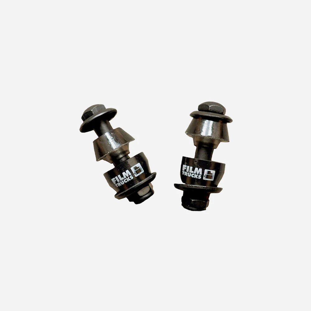 Kit de modification d’axe pour trucks Film, passez en axes inversés, afin d’obtenir l’axe le plus bas possible et éviter au maximum les Hang Up’s. Le kit se compose de : 2 axe inversé avec boulons / 2 gomme supérieures coniques 85A / 2 gommes basses cylindriques 85A / 2 coupelles hautes / 2 coupelles basses.