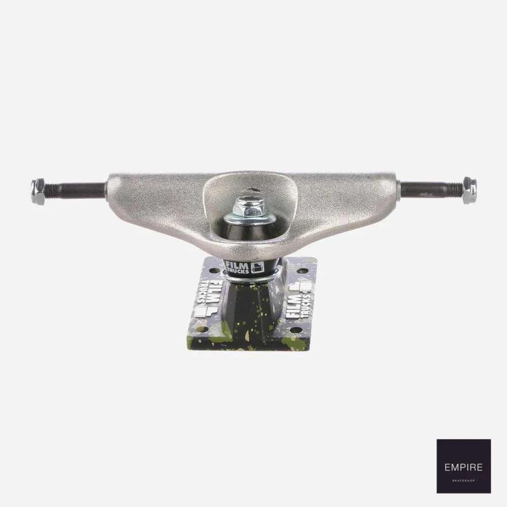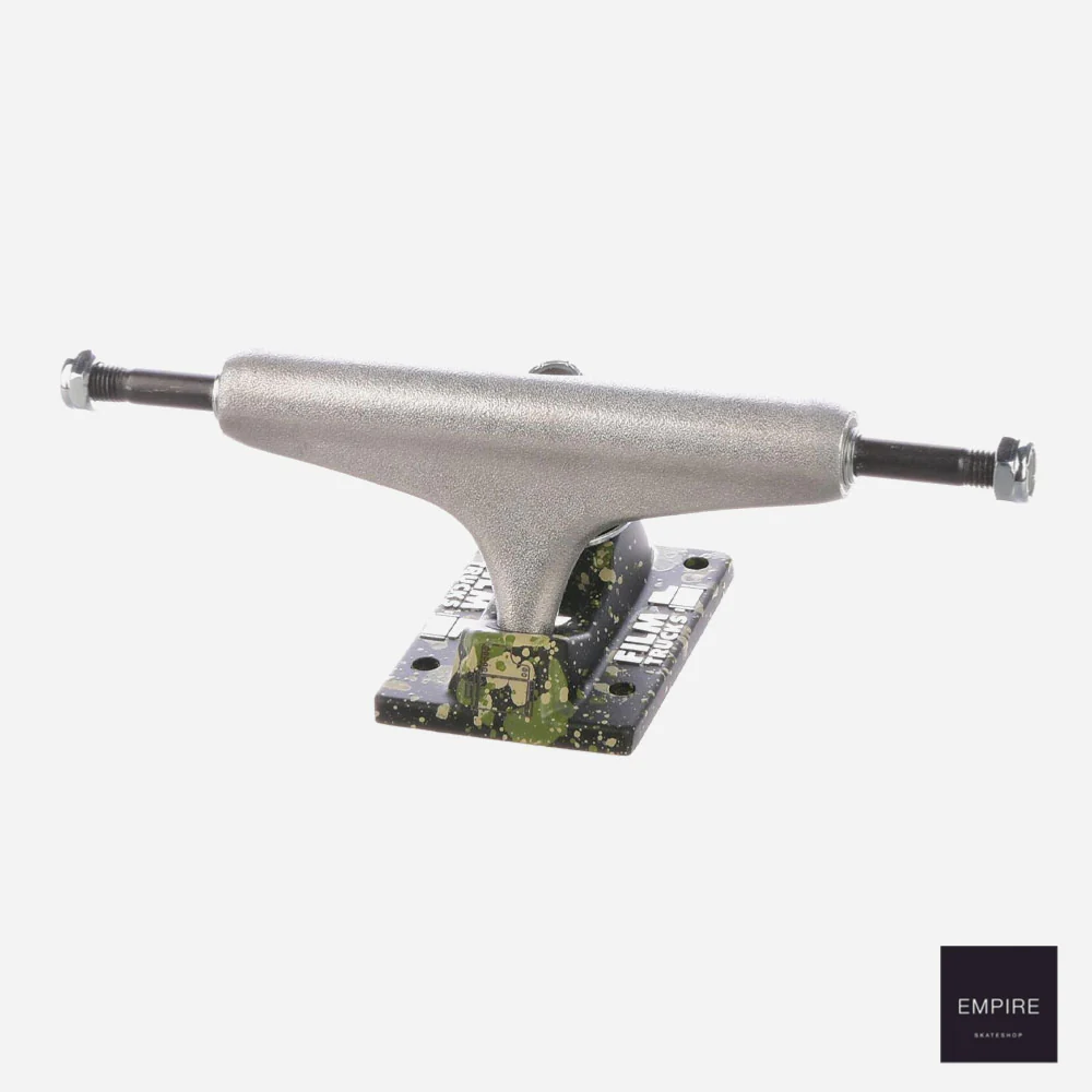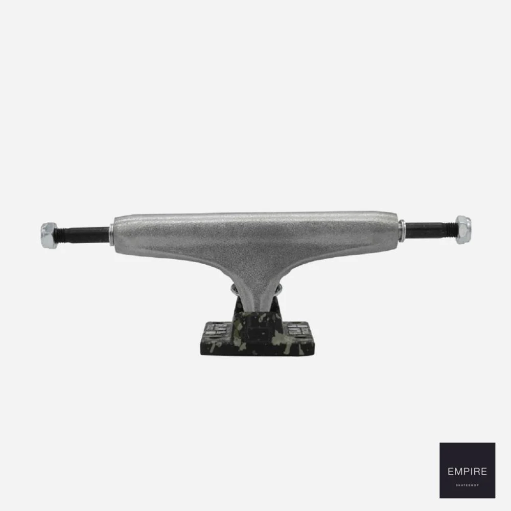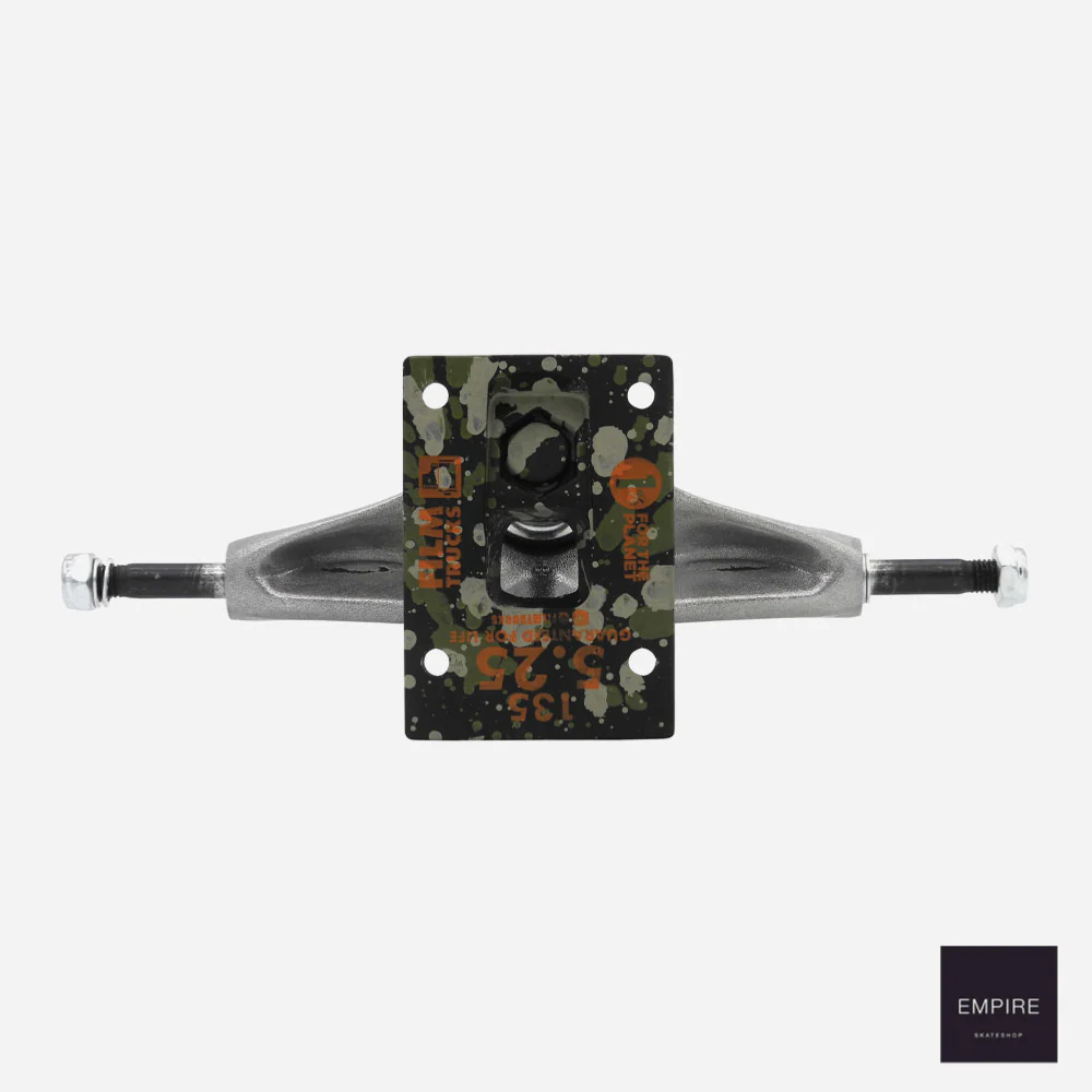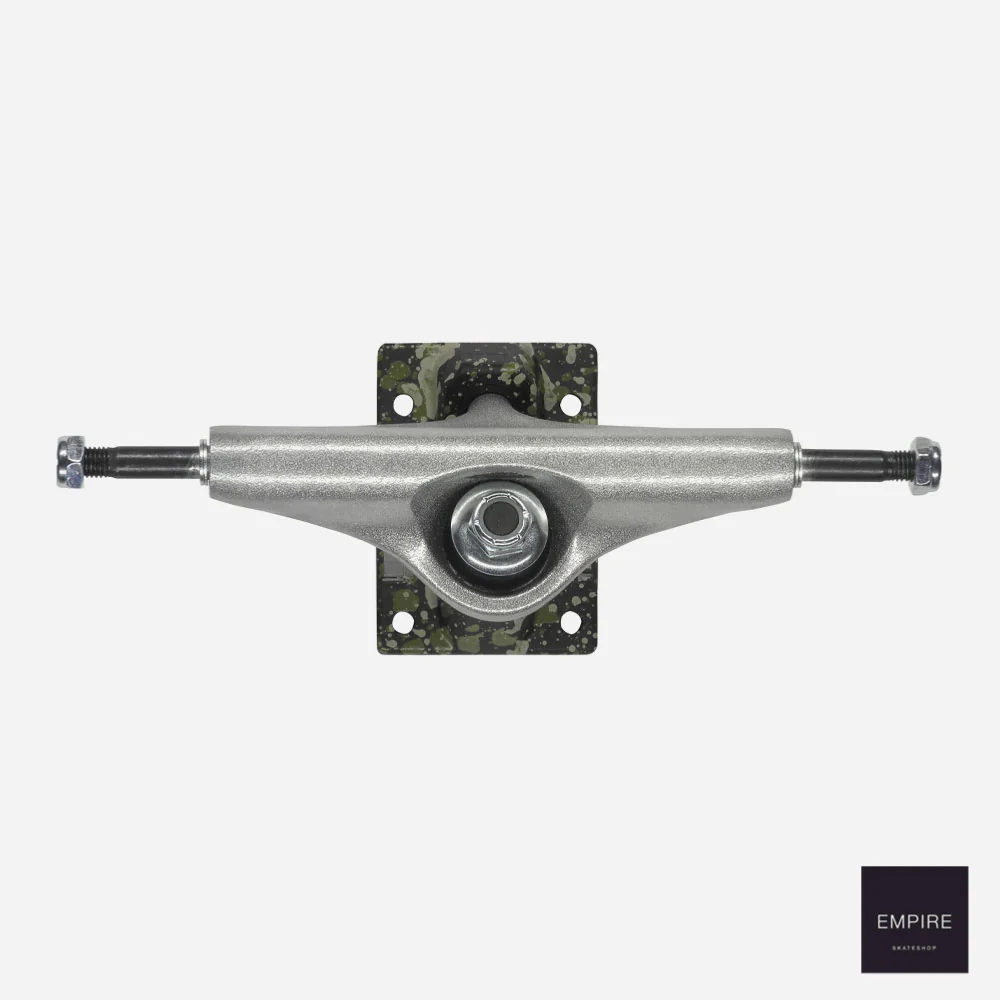Finition du truck poli à la machine avec un rendu faiblement lustré avec embase peinte en motif camouflage.