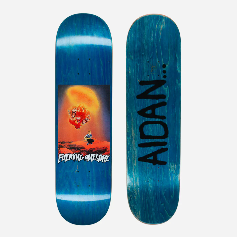 Planche Fucking Awesome 7-plis en bois d’érable canadien et résine époxy. Modèle du skateur pro Aidan Mackey. Shape classique.