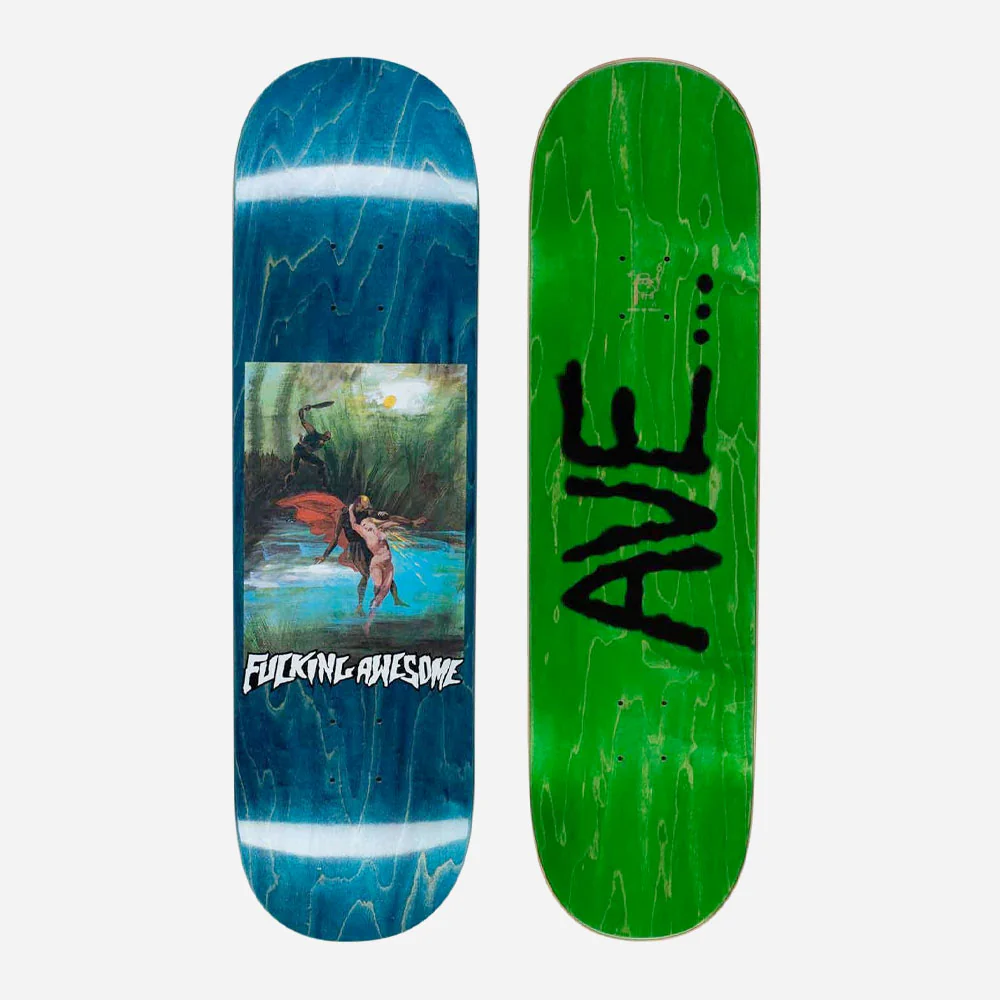 Planche de skateboard Fucking Awesome, fabrication 7-plis en bois d’érable canadien et résine époxy, presse unique. Pro-modèle d’AVE, Anthony Van Engelen. Shape avec nose et tail larges.