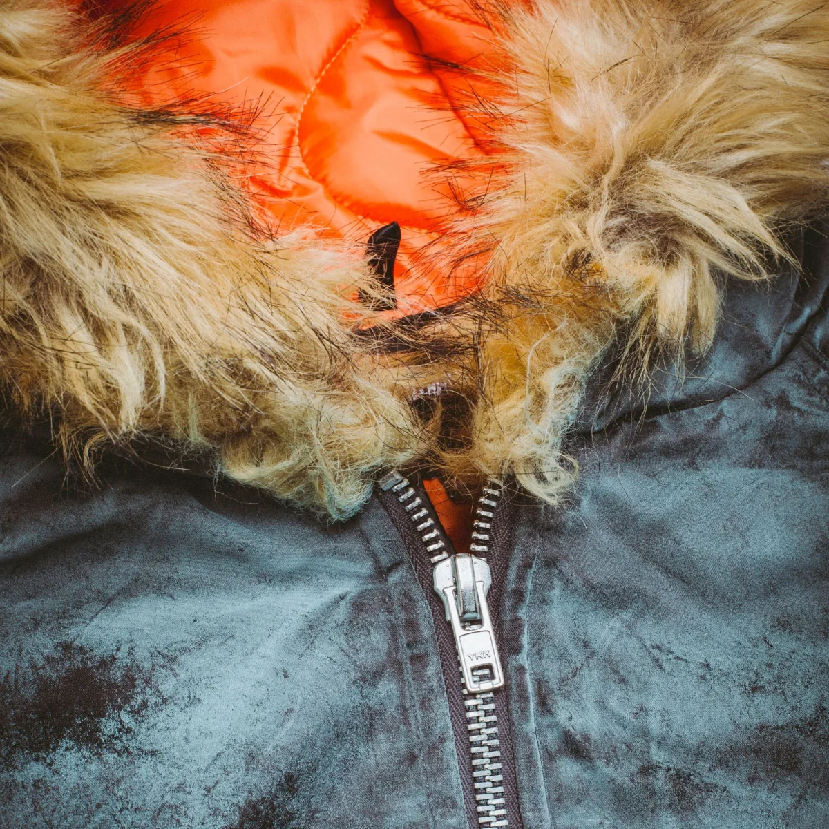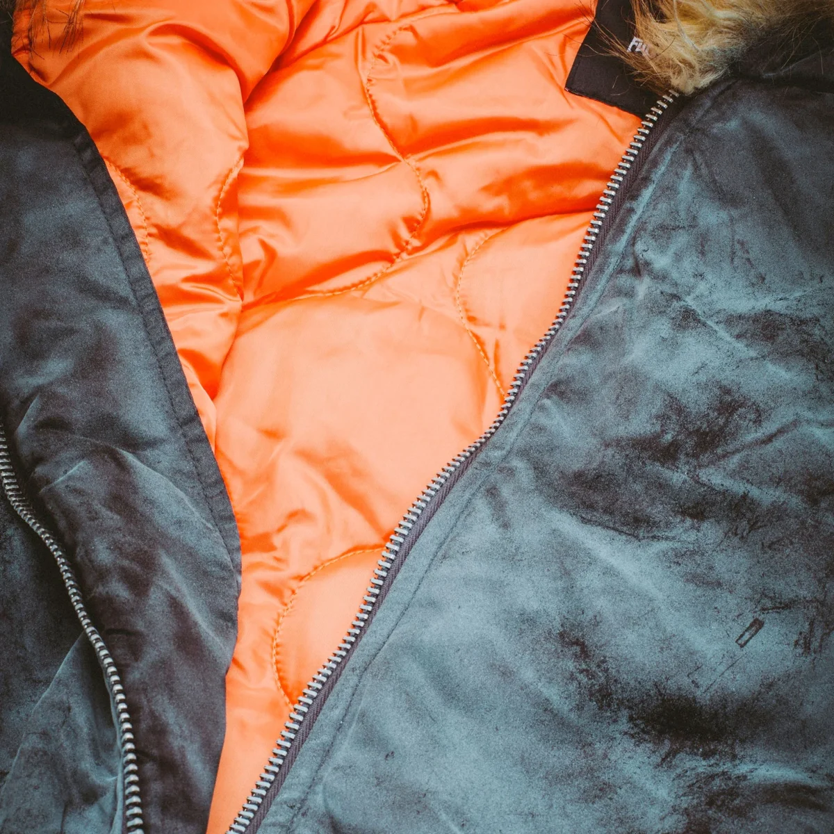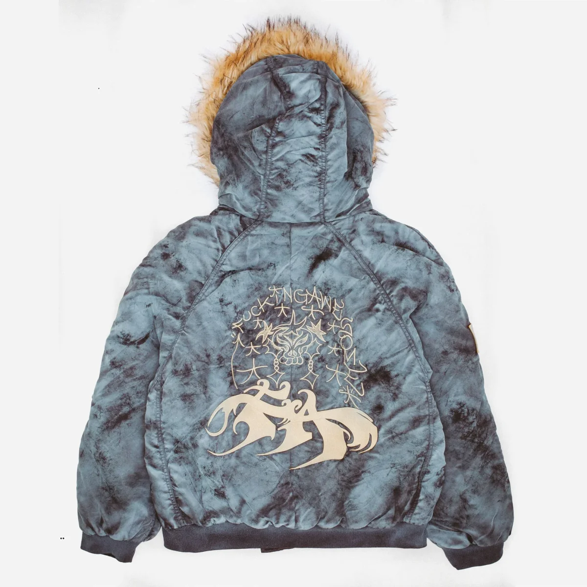 Veste Bomber à Capuche Fucking Awesome, finition pigments de couleur vaporisés sur tout la surface extérieure. Capuche avec fausse fourrure. Large broderie dans le dos. Doublure matelassée. Côtes élastiques à l’ourlet et aux poignets.