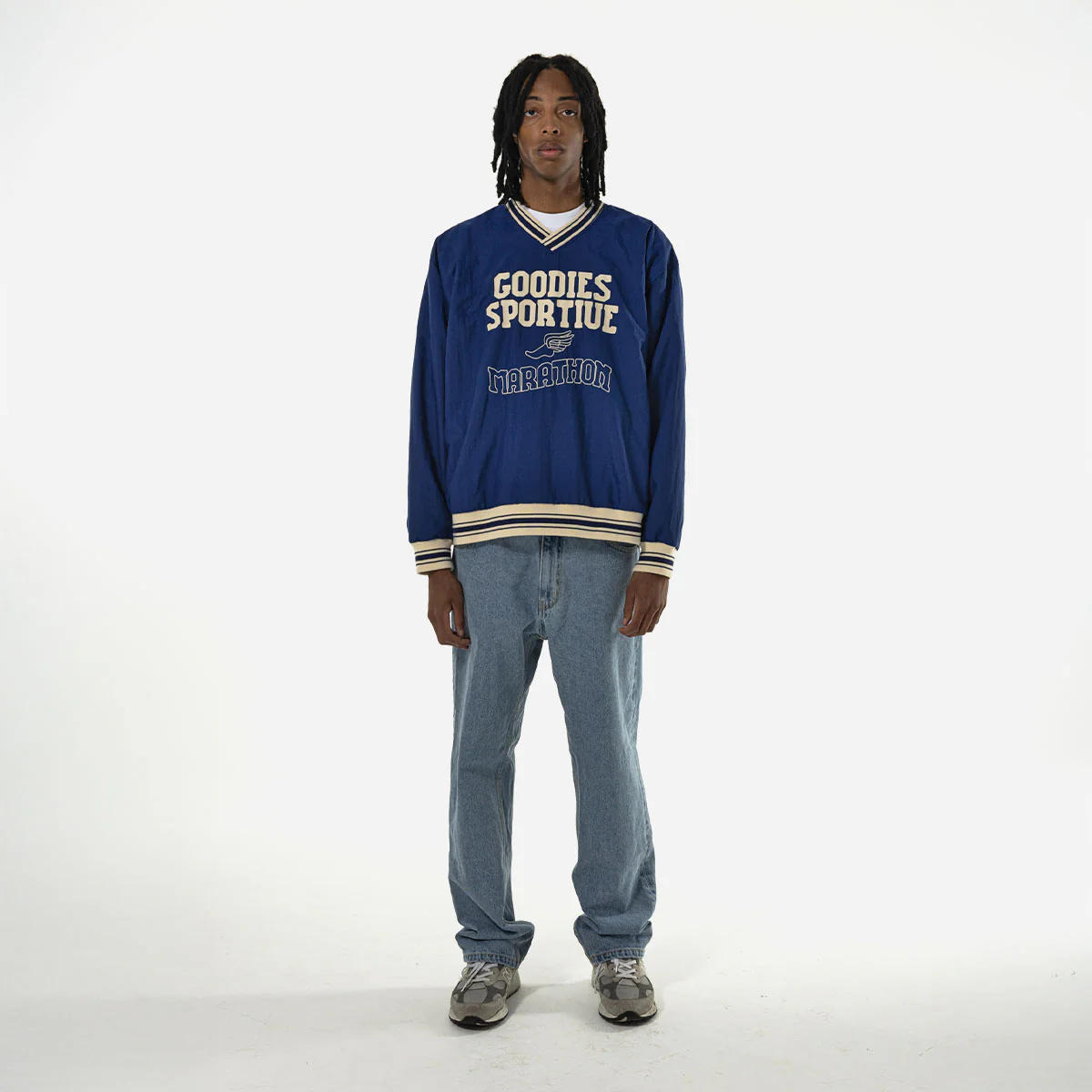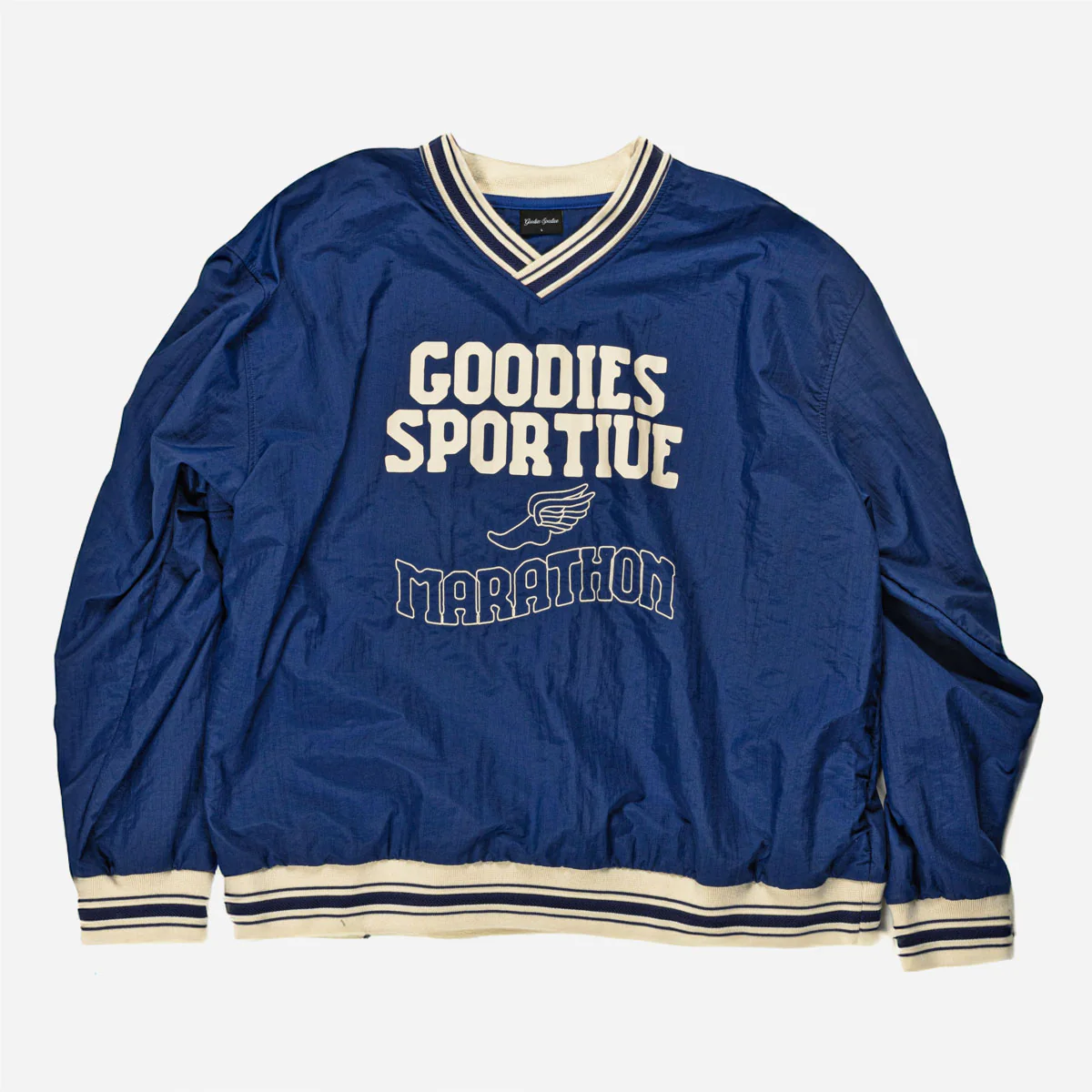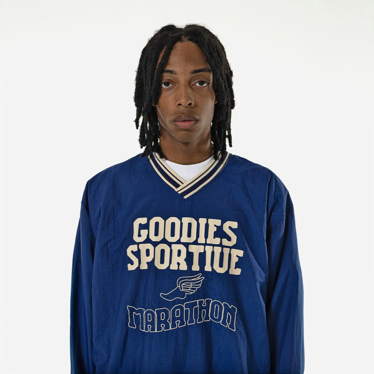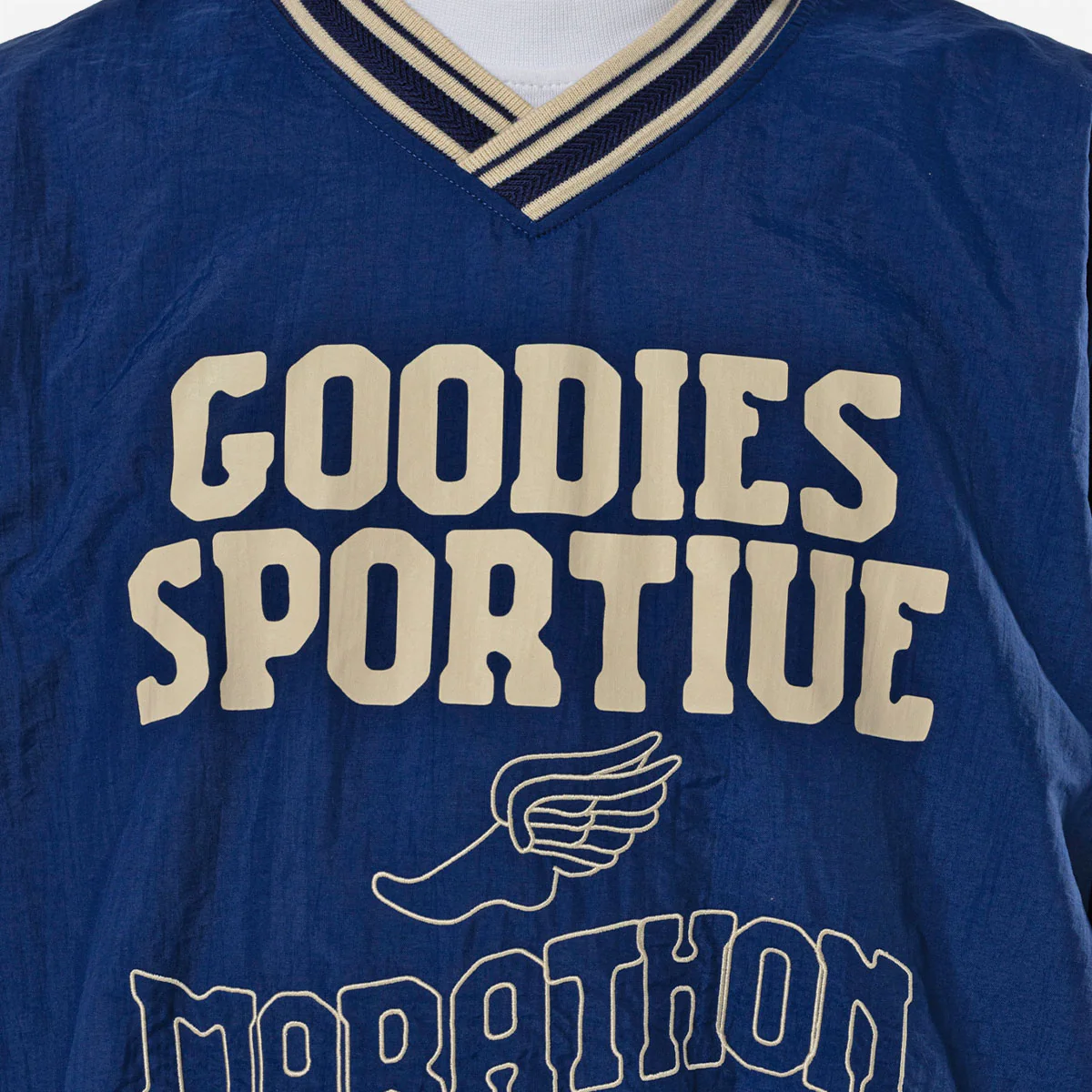 Top vintage Goodies Sportive, coupe boxy avec col en V cotelé, fabriqué en polyester avec logo imprimé en relief sur le devant.