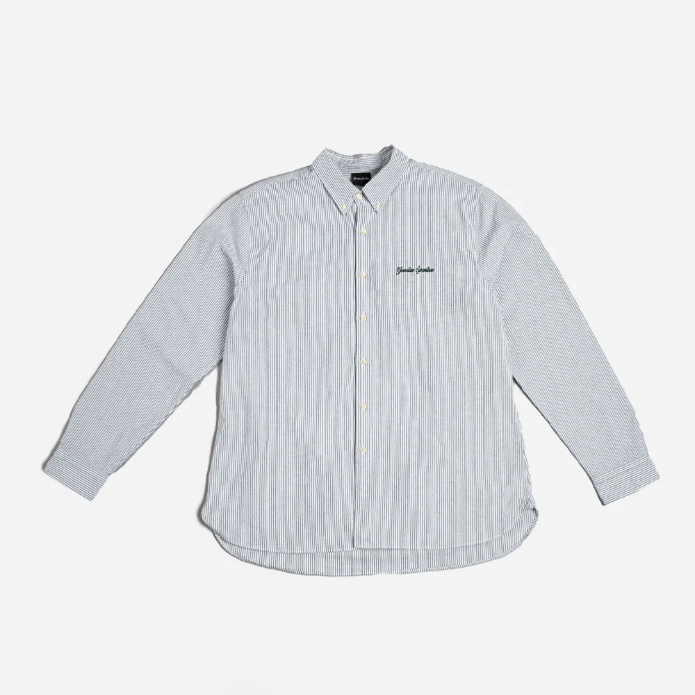 Chemise Goodies Sportive, fabriquée en coton Oxford vert et écru, un classique qui ne se démode jamais. Coupe ample. Broderie Goodies Sportive sur l’avant.