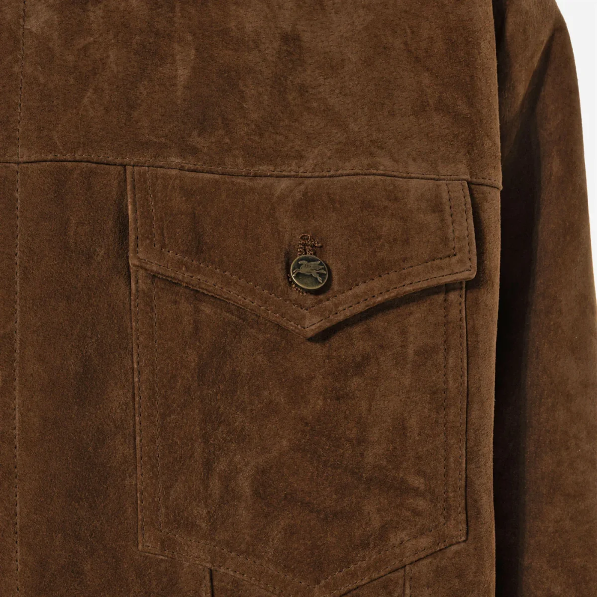 Son design se distingue par ses deux poches frontales inspirées du style cowboy, qui apportent à la fois fonctionnalité et caractère. La coupe sobre et raffinée met en valeur la texture naturelle du cuir suédé, offrant un rendu luxueux et intemporel.