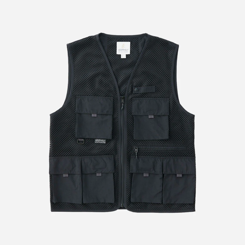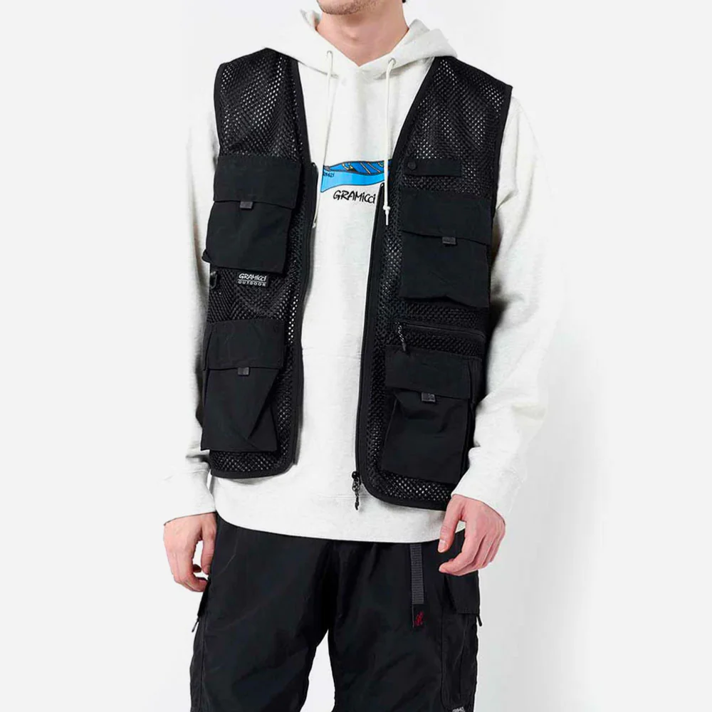 Un gilet de pêche avec une double maille à l’avant et un fil de nylon à l’arrière qui ressemble à du coton, résiste à la déchirure et possède un ripstop durable. Il contient 7 poches dont une grande poche zippée au dos.