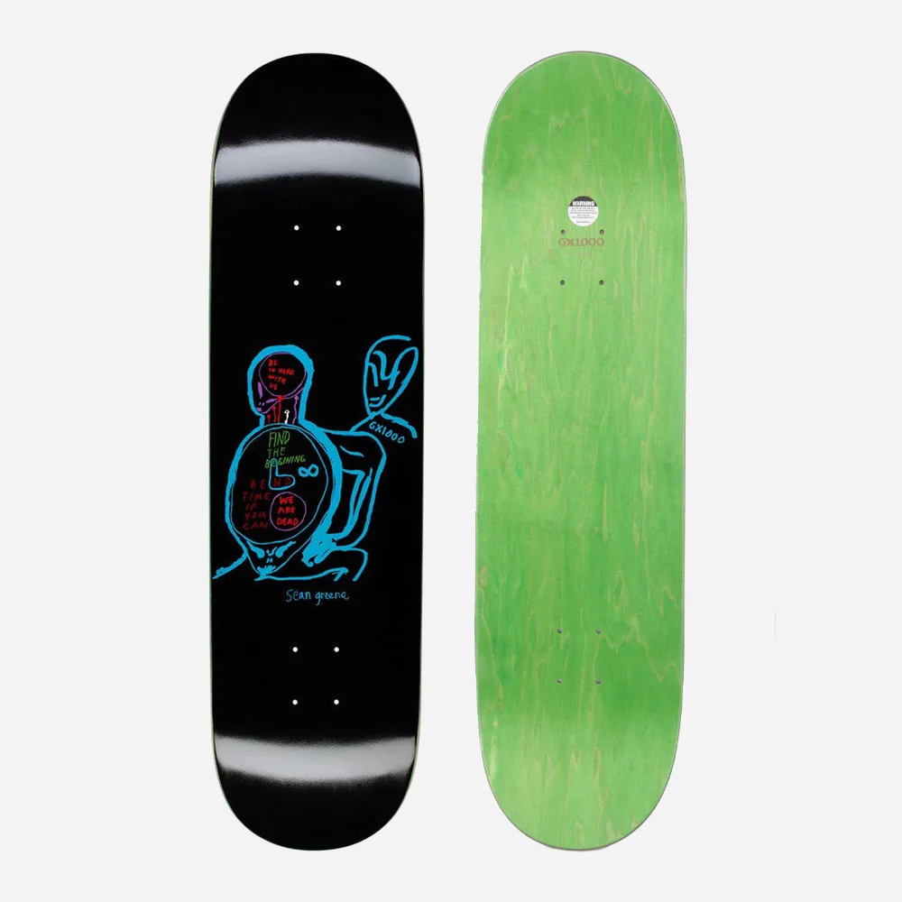 Planche de skate GX1000 7-plis en bois d’érable canadien et résine époxy. Pro modele de Sean Greene. Shape classique avec concave un peut marqué et nose plus large. Logo classique GX1000 sérigraphié.