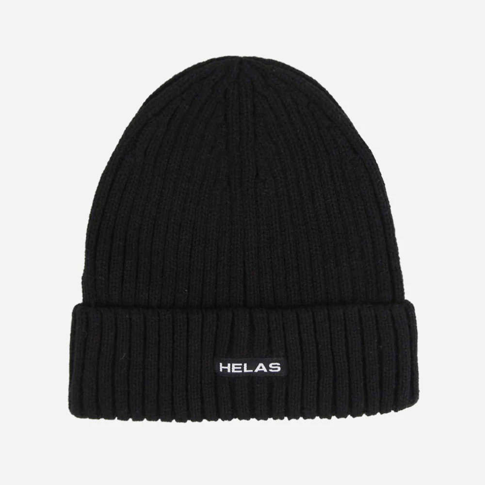 Bonnet acrylique en tricot côtelé, coupe classique avec patch Hélas sur le revers. Taille unique.
