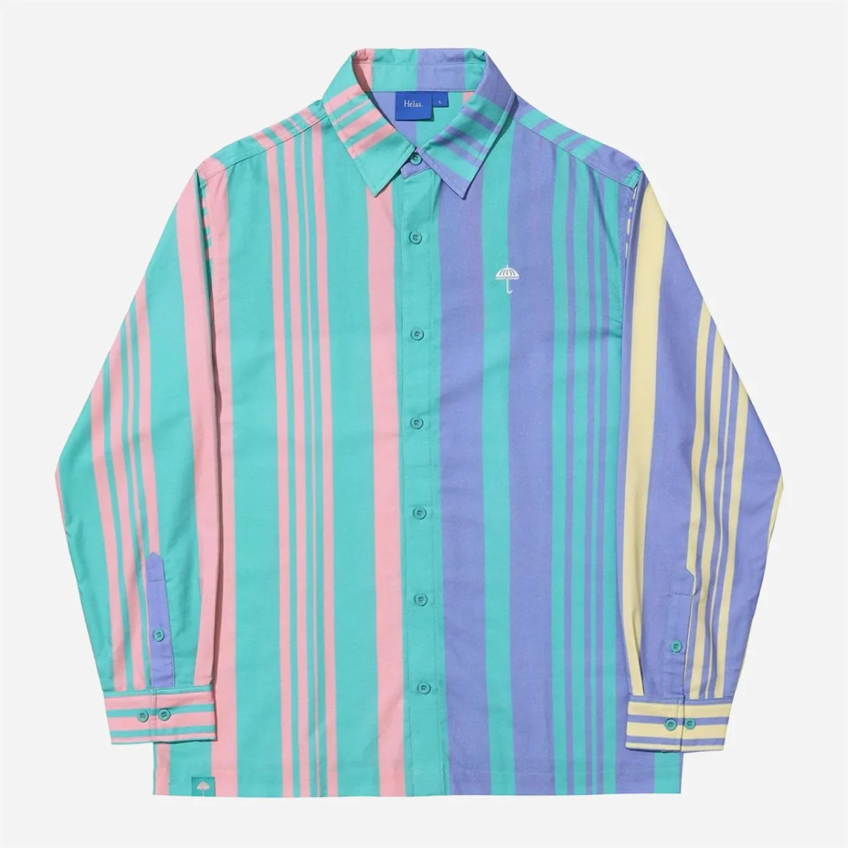 Découvrez la chemise HELAS SPRINGGY LS SHIRT, avec boutons et logo parapluie iconique. Fabriquée en coton , elle offre un look tendance avec ses larges rayures verticales. Son coupe droite et ample vous assure un confort optimal. Parfait pour un style décontracté mais chic!