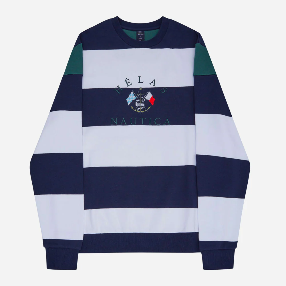Ce sweat ras de cou à rayures Hélas en collaboration avec la marque Nautica ajoute une touche de style à votre garde-robe. Le logo brodé Hélas x Nautica cousu sur le devant met en valeur cette collaboration unique. Restez au chaud et élégant avec ce sweat.