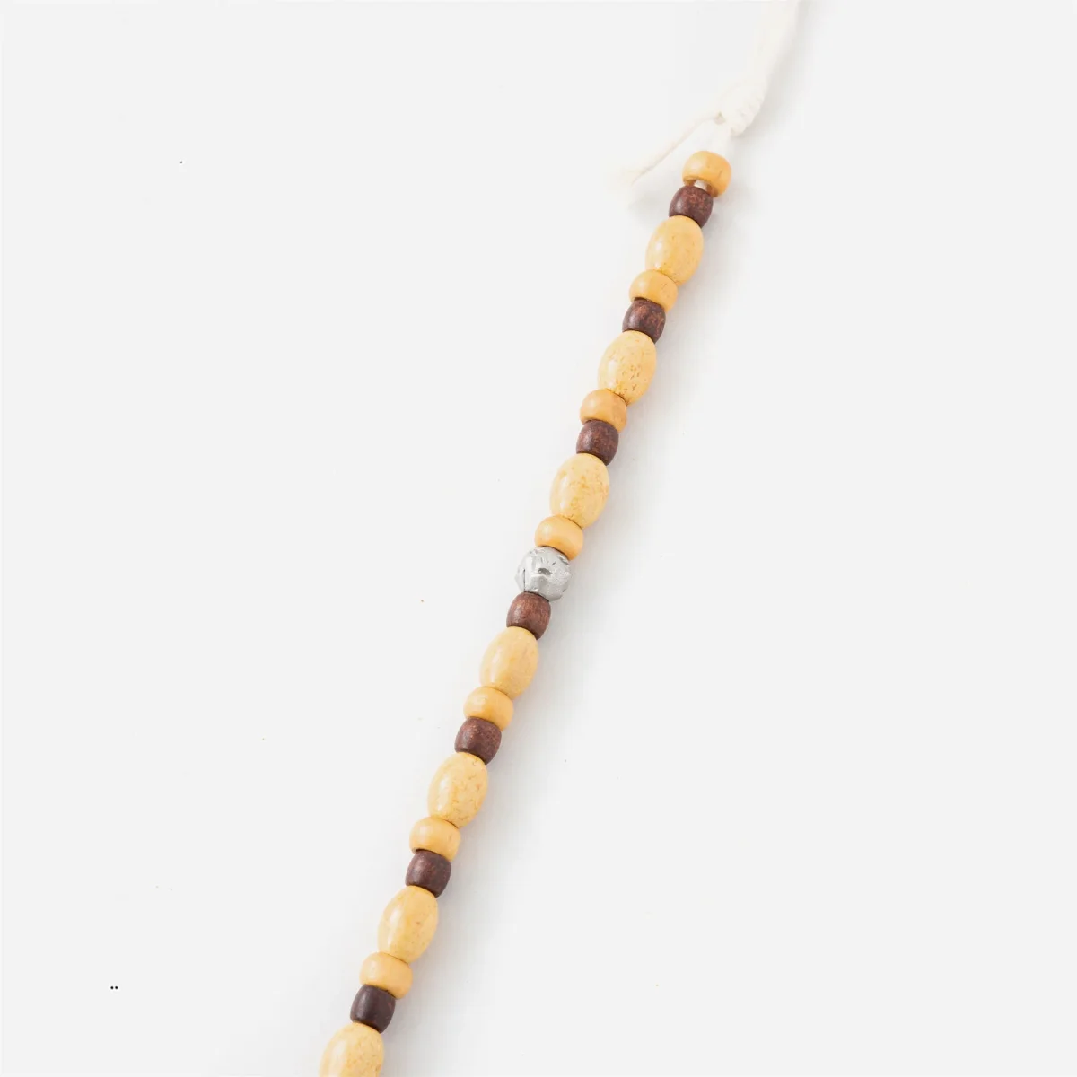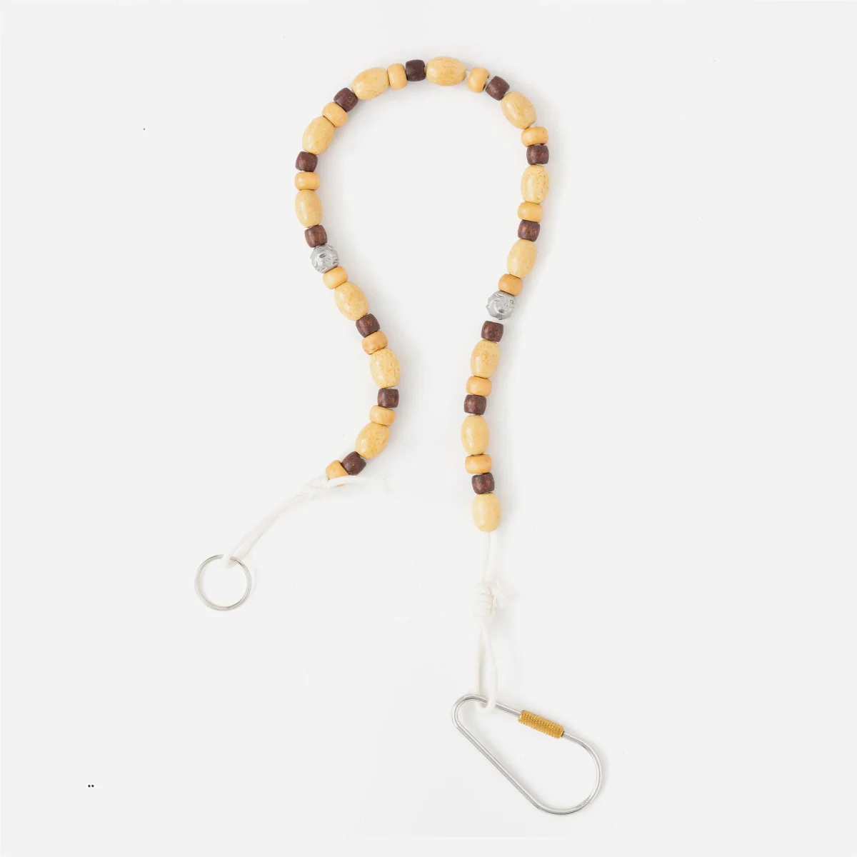 Chaîne Heresy, pouvant servir de chaîne pour portefeuille ou comme un bijoux pour accessoiriser vos vêtements. Elle est constituées de perles en bois et métal montées sur une corde tressée, finie d’un coté par un anneau et de l’autre par un mousqueton.