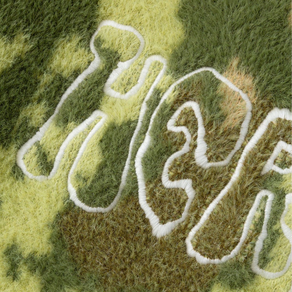 Pull à col rond Heresy London tricoté dans un style mohair duveteux, avec imprimé « Mould » et broderie « Heresy » en fil blanc. Ce pull oversize est confectionné à partir d’un fil 100 % nylon.