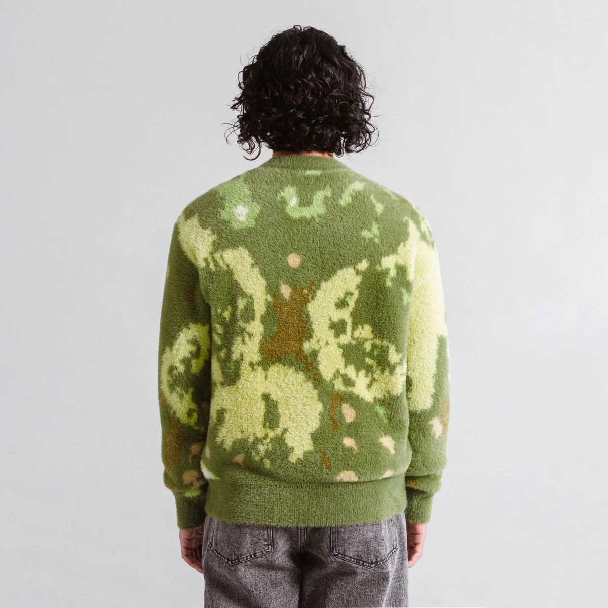 Pull à col rond Heresy London tricoté dans un style mohair duveteux, avec imprimé « Mould » et broderie « Heresy » en fil blanc. Ce pull oversize est confectionné à partir d’un fil 100 % nylon. Le mannequin mesure 1,83 m et porte une taille M.