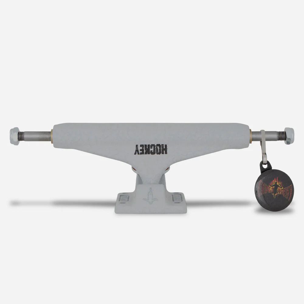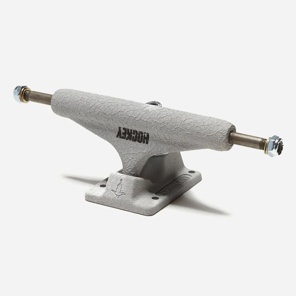 Truck Independent classique revisité par Hockey. Avec un traitement effet spécial craquelé, logo Hockey embossé sur l’embase et Hockey imprimé sur le hanger. Livré avec un Pins Hockey. Truck Independen classique pour tout type de skateboards. Hauteur de 55 mm pour des performances optimales et un dégagement des roues de 56 mm et moins. Hanger et embase en aluminium A356 T6, le meilleur alliage d’aluminium léger traité thermiquement à l’état T6 pour la solidité, la durabilité et une meilleure sensation du grind. Axe en acier chromoly SCM435, la meilleure qualité et durabilité disponible. Axe de grade 8 Ne se casse jamais, ne se plie jamais. Les modèles 159 et 169 sont équipés d’une plaque de base universelle à 6 trous avec un schéma de montage ancien et nouveau.