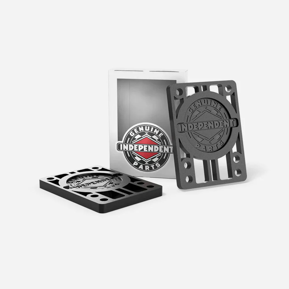Jeux de 2 pads Independent pour sur-élever les trucks de skateboards de 6mm. Fabrication haute qualité en TPU chargé en fibres de verres.