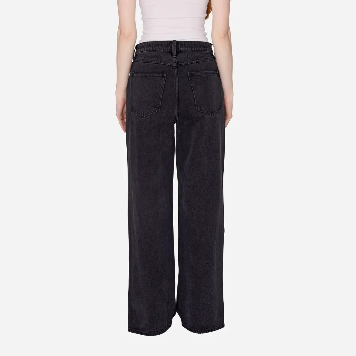 Denim Noir Vintage : La toile en denim robuste arbore un coloris noir délavé (faded black) très travaillé, avec des zones subtilement blanchies sur les coutures pour un aspect « déjà porté » authentique.