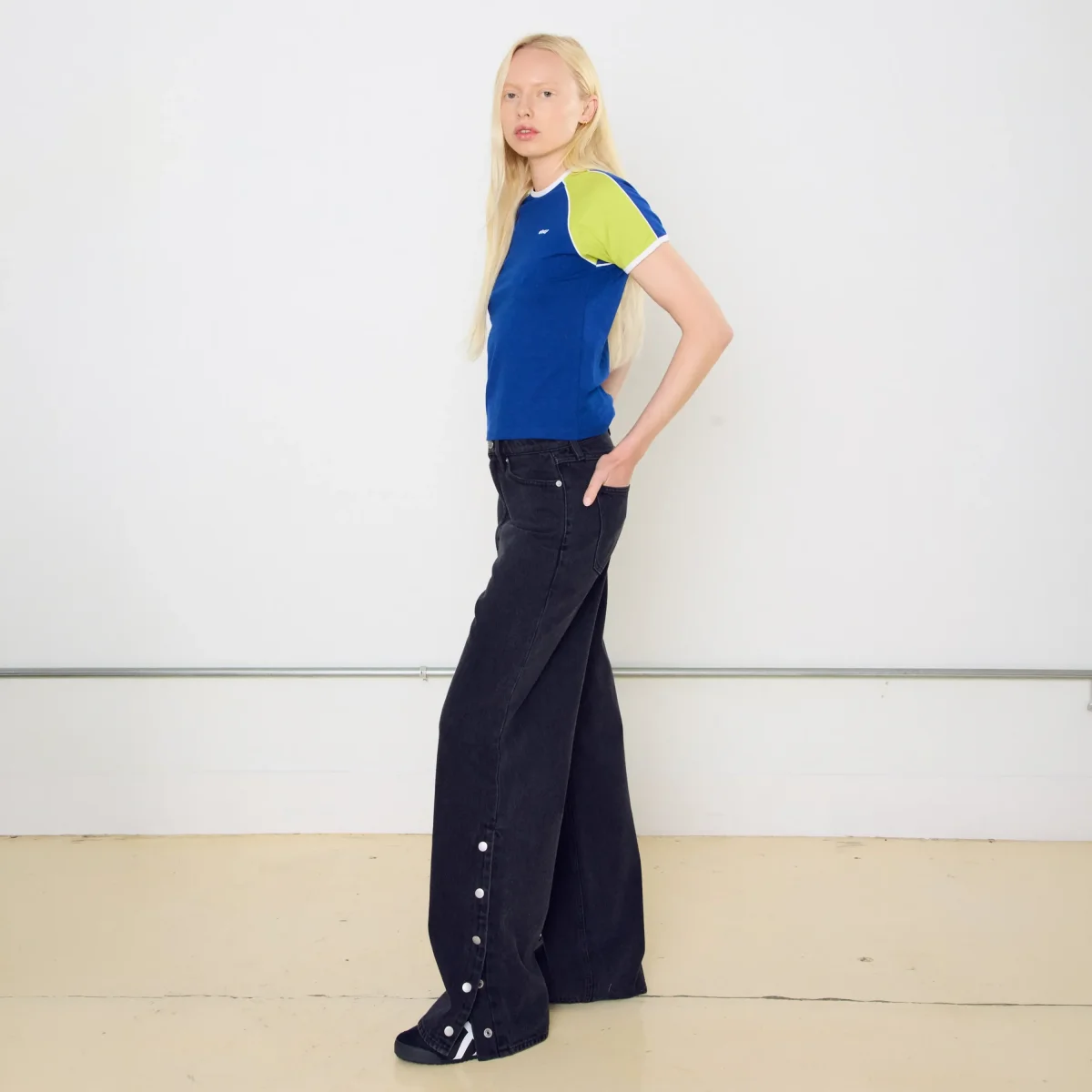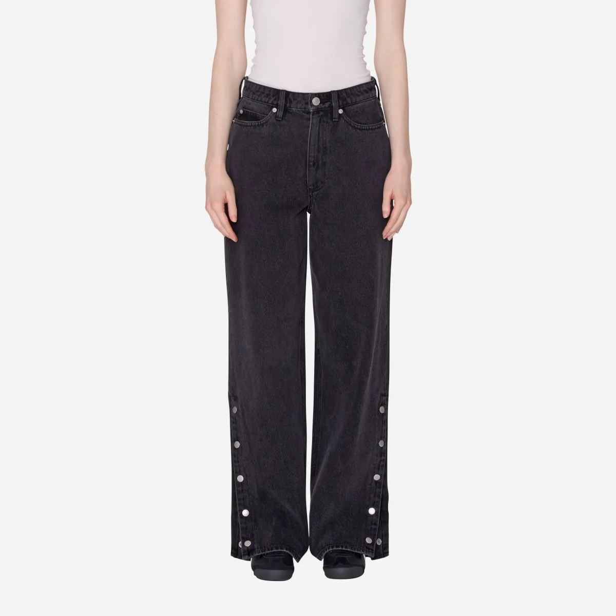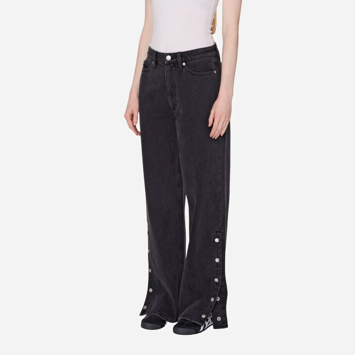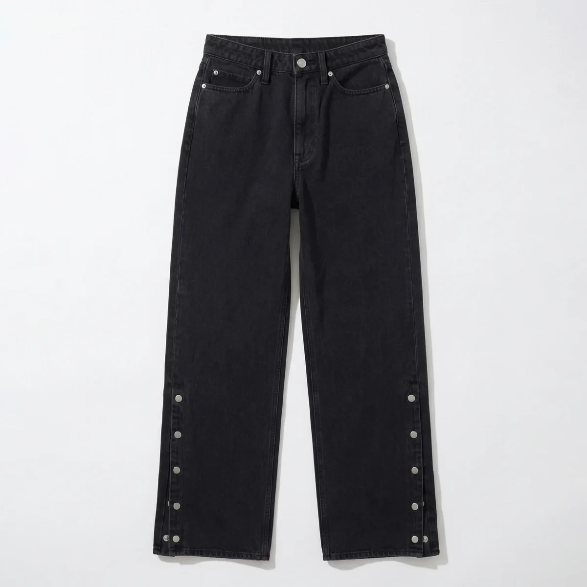 Le Détail « Side Snap » : Le bas de la couture extérieure est doté d’une fente agrémentée de boutons-pression métalliques argentés. Laissez-les fermés pour une coupe droite baggy, ou détachez-en quelques-uns pour créer un effet fendu ultra-tendance qui mettra vos sneakers en valeur.
