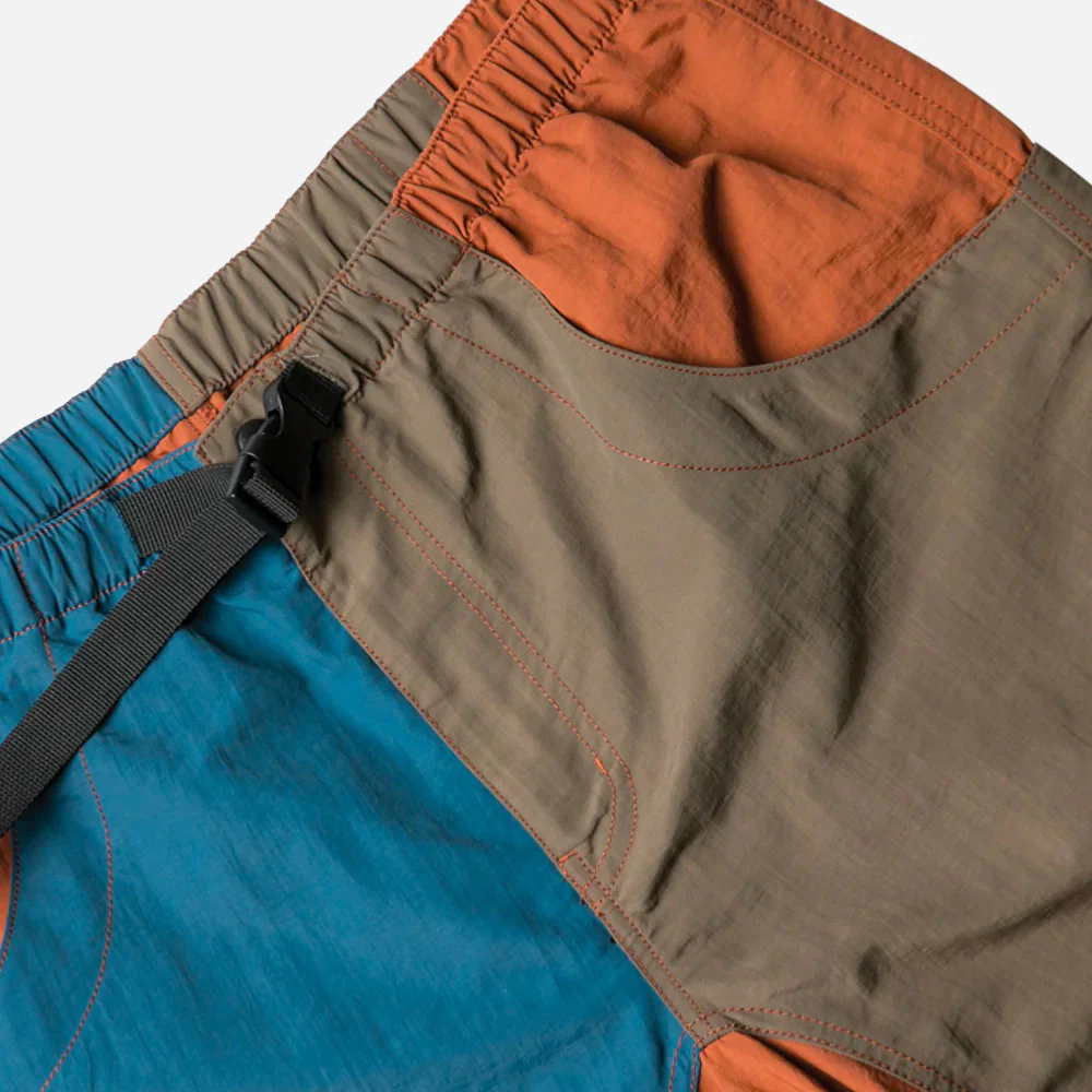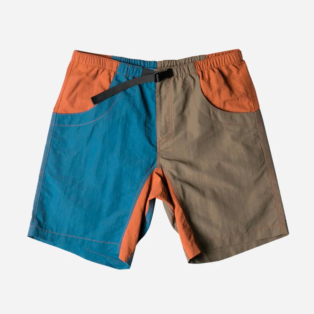 Le short Big Eddy est un short avec une coupe ample et une taille élastique avec braguette caoutchoutée à boutons-pression et fermeture éclair. Le short possède une ceinture en nylon intégrée de ¾ » avec boucle centrale YKK, des poches avant renforcées en demi-lune avec porte-monnaie interne à l’arrière droit ainsi que des sacs de poche en filet.