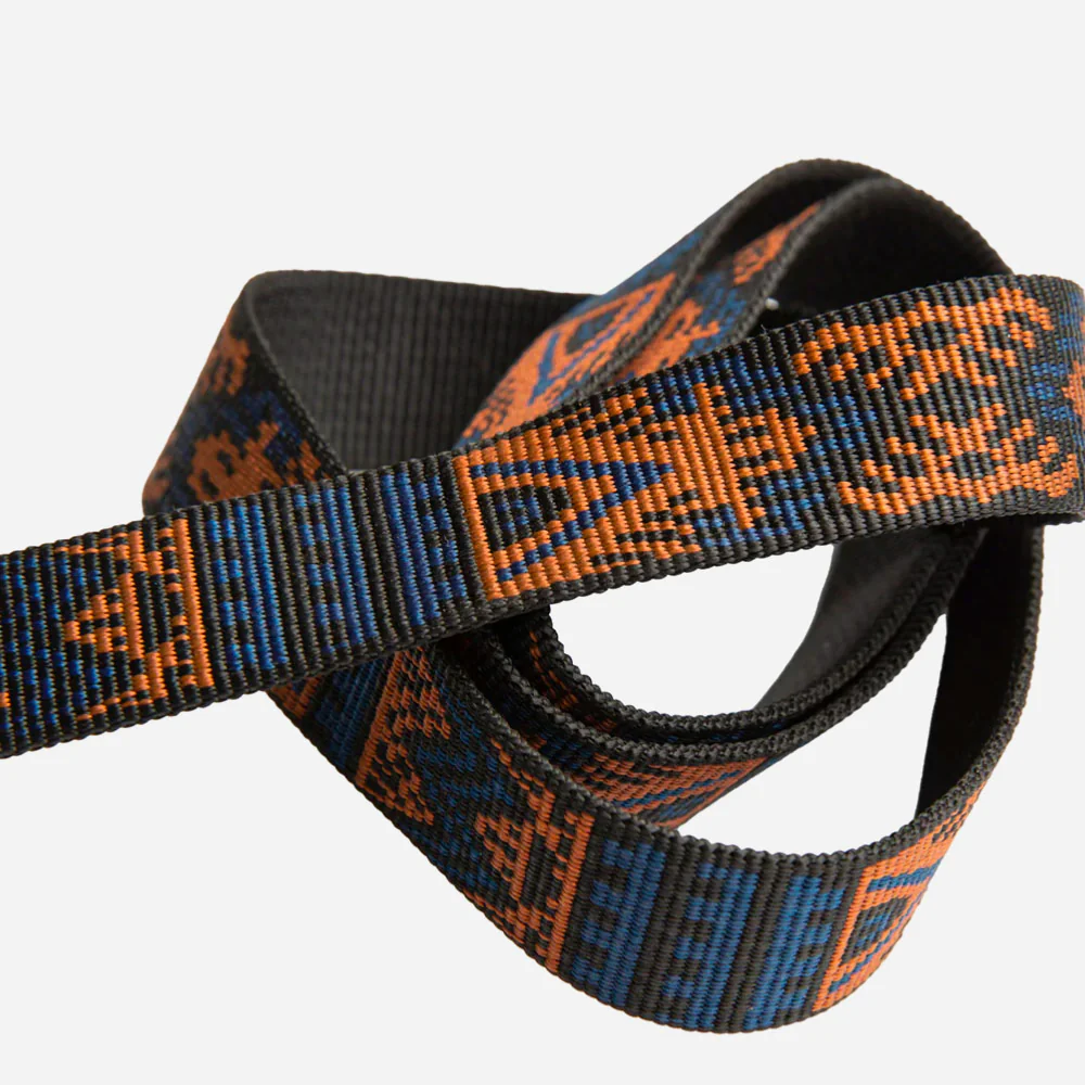 Ceinture ajustable fabriqué en polypropylène. La sangle est plate à motif avec une boucle à déclenchement centrale. La ceinture se découpe à la longueur voulue afin de correspondre à chaque personne.