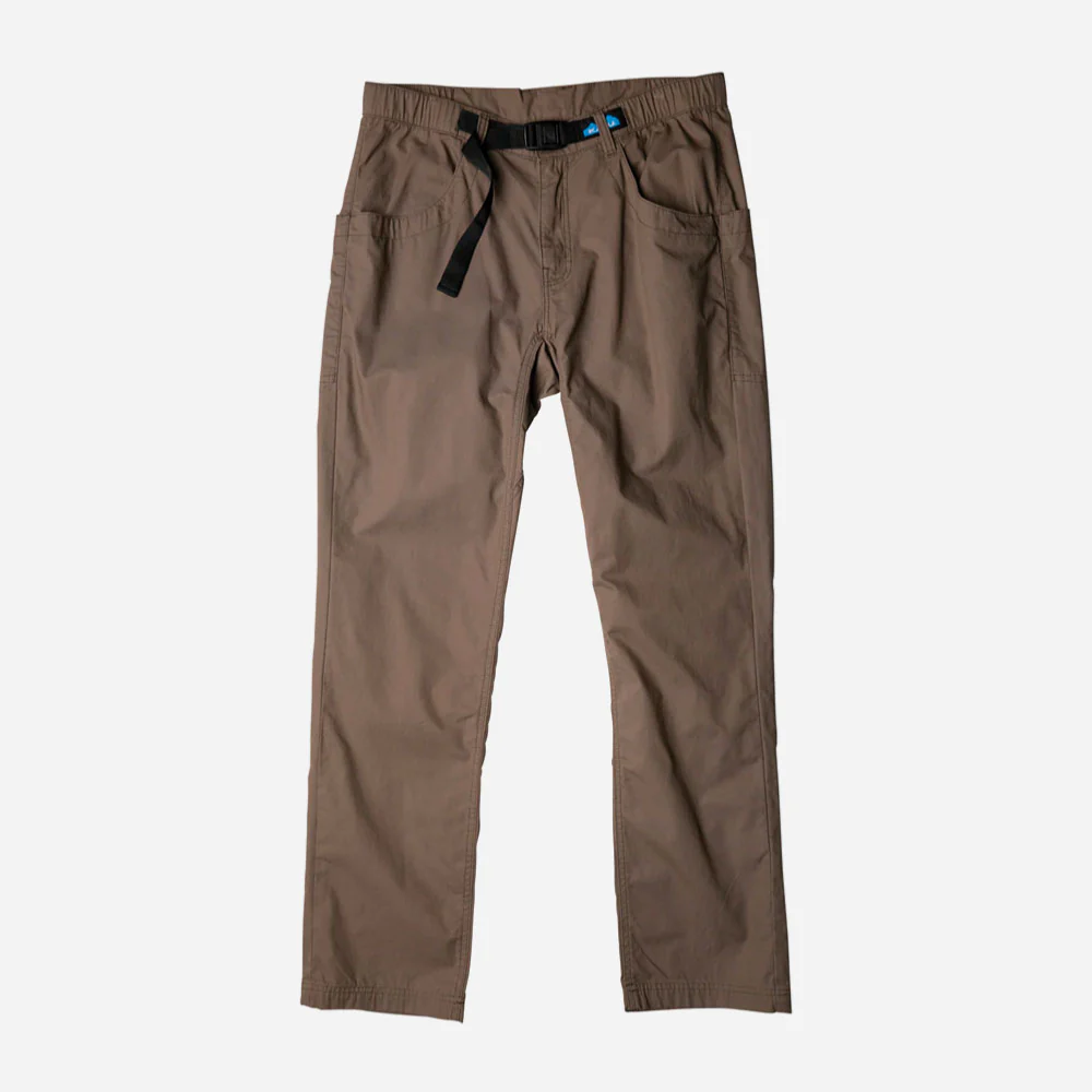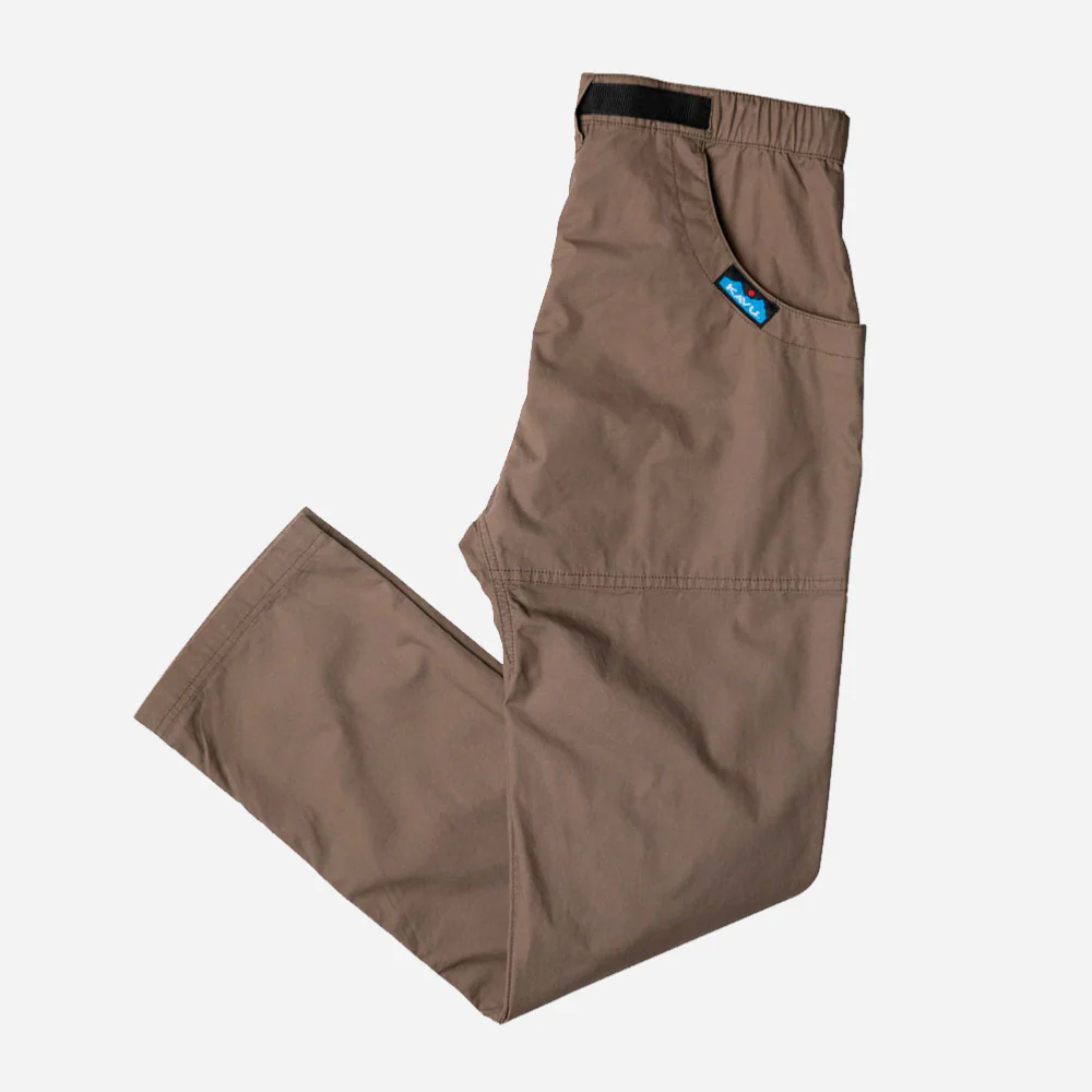 Le Chilli Lite Pant est un pantalon décontracté en toile de coton 6oz. Ce pantalon possède un taille semi-élastique avec un bouton et une braguette zippé avec le logo Kavu. Il y a aussi une ceinture intégrée avec une boucle centrale YKK ainsi que des poches en demi-lune avec porte-monnaie à l’arrière droit.