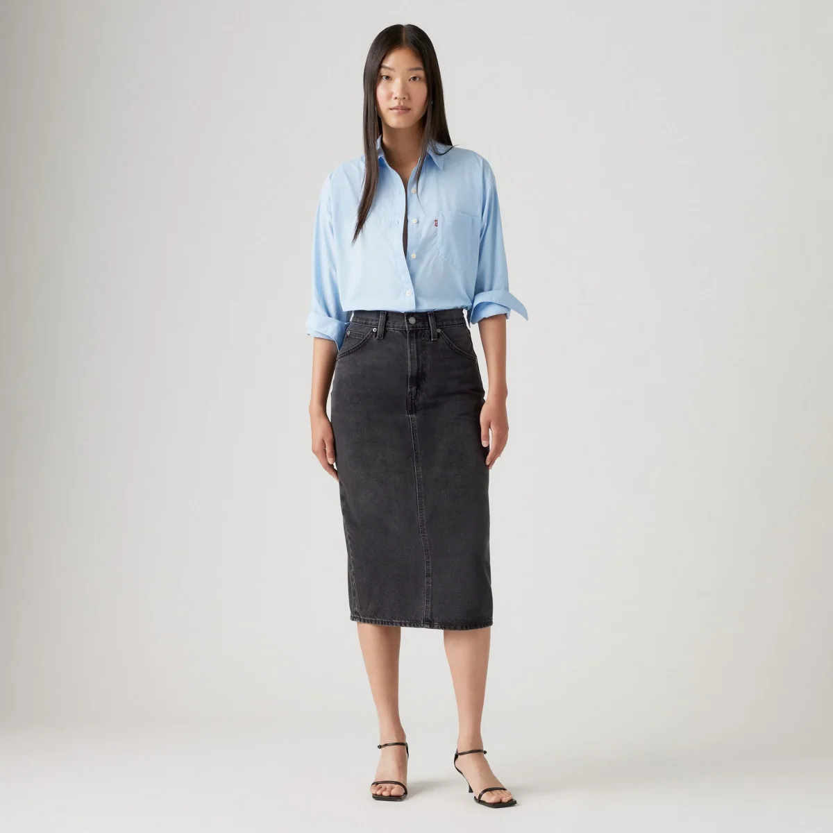 Voici une jupe au look vintage, avec sa taille haute une coupe slim et fendue à l’arrière. Elle soulignera votre taille de façon flatteuse.
