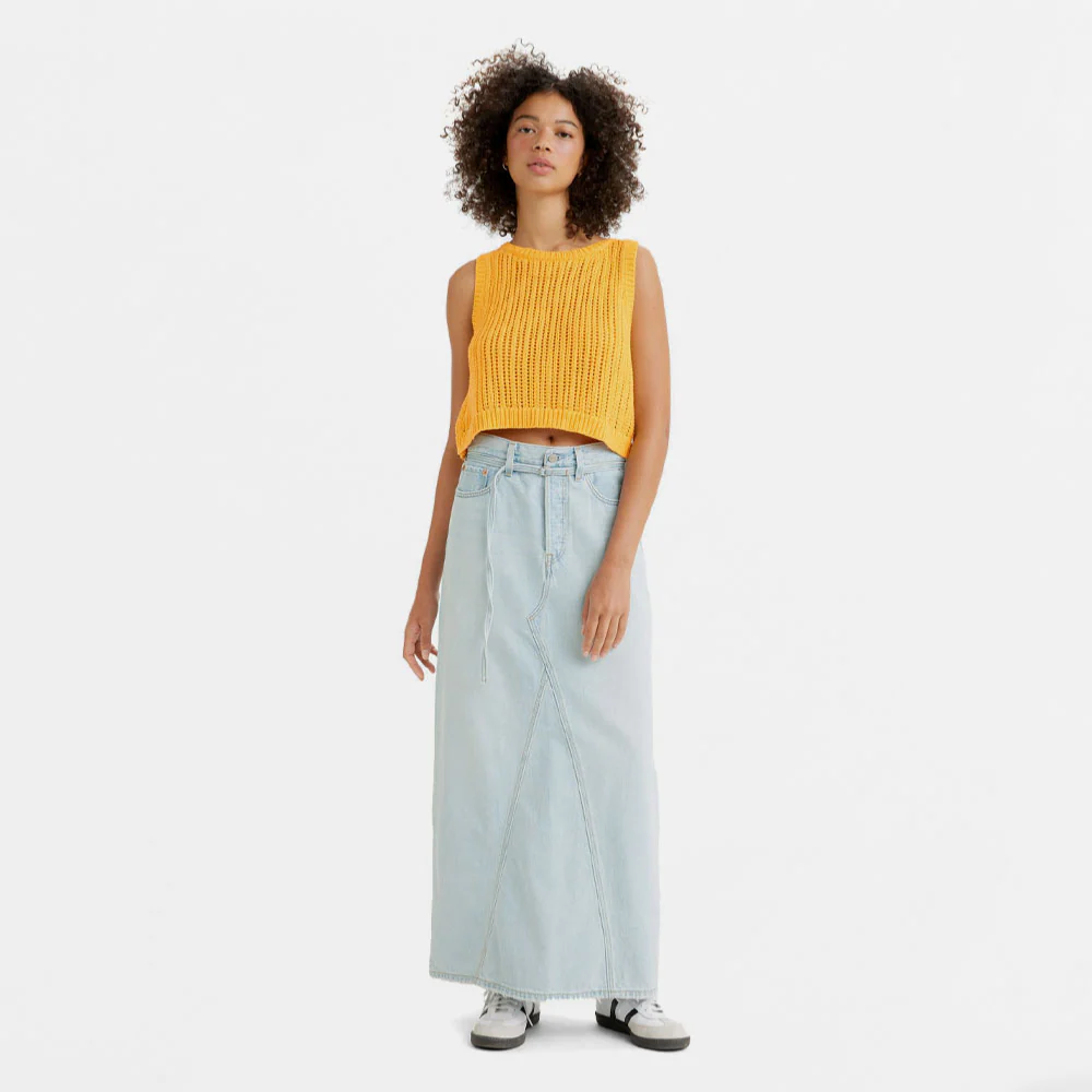 La jupe en denim de longueur maxi que vous voulez, un intemporel Levi’s intemporelle, comme si vous l’aviez fabriquée à partir de votre jean 501® préféré. Les poches arrière sont conçues pour flatter la silhouette et un fine ceinture permet d’ajuster la taille.