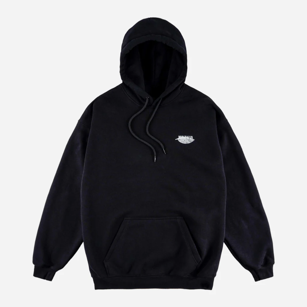 Sweat zippé à capuche en coton épais, fermeture par glissière métallique YKK, large logo imprimé dans le dos, logo Magenta imprimé sur la poitrine. Capuche avec logo Magenta au bout des liens de serrage.