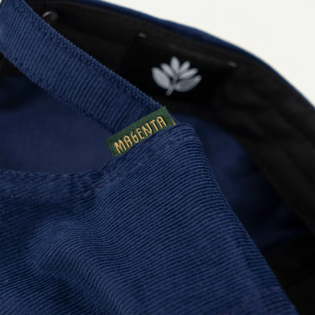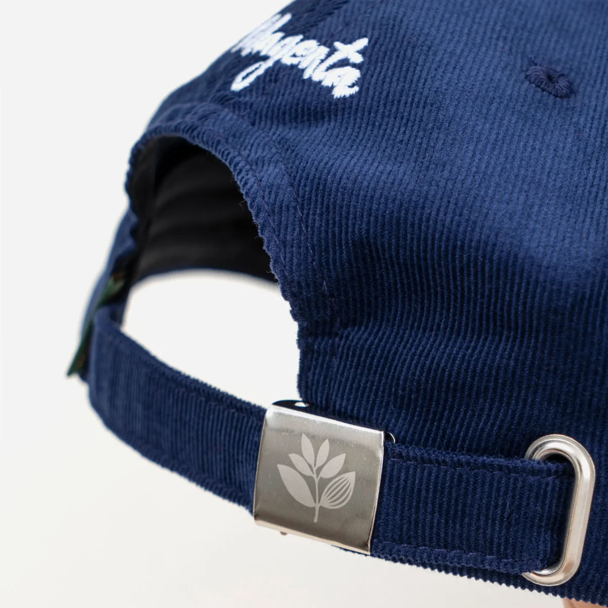 Casquette Magenta en velours côtelé, broderie « Jazz push » sur l’avant, Sangle de serrage réglable en velours côtelé avec logo « Plant » gravé sur la boucle de fermeture.