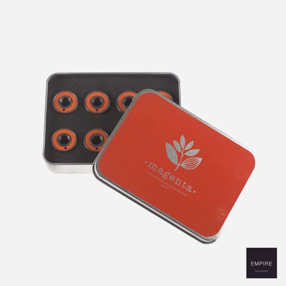 Jeu de huit roulements Magenta pour skateboard. Qualité Abec 7. Composition :100% acier Couleur :Orange Made in :Kitai SKU de l’article :MAGABEAR7