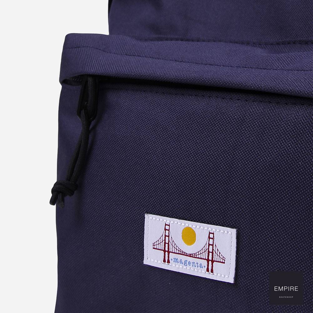 Sac à dos format classique, poche externe avec patch Magenta.