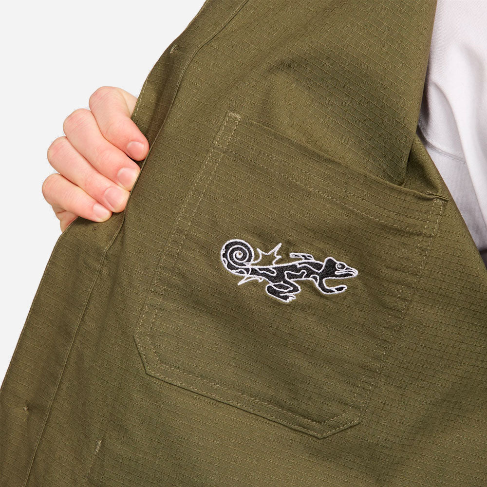 Préparez-vous à vous habiller avec style pour votre prochaine séance de skate avec la veste Chore de la Nike SB Agnostic en Olive moyen blanc. Issue de la collection Agnostic du skateur extraordinaire Alexis Sablones, cette veste résistante en coton mélangé ripstop est dotée d’un col classique et d’une fermeture à boutons. De plus, vous aurez suffisamment de place pour ranger vos essentiels dans les deux poches avant, tout en montrant le logo brodé et les détails du caméléon sur la poche intérieure, qui représentent l’adaptabilité et la diversité. Préparez-vous à arborer un look frais et enjoué, tout en restant confortable et prêt à affronter toutes les aventures qui se présenteront à vous.