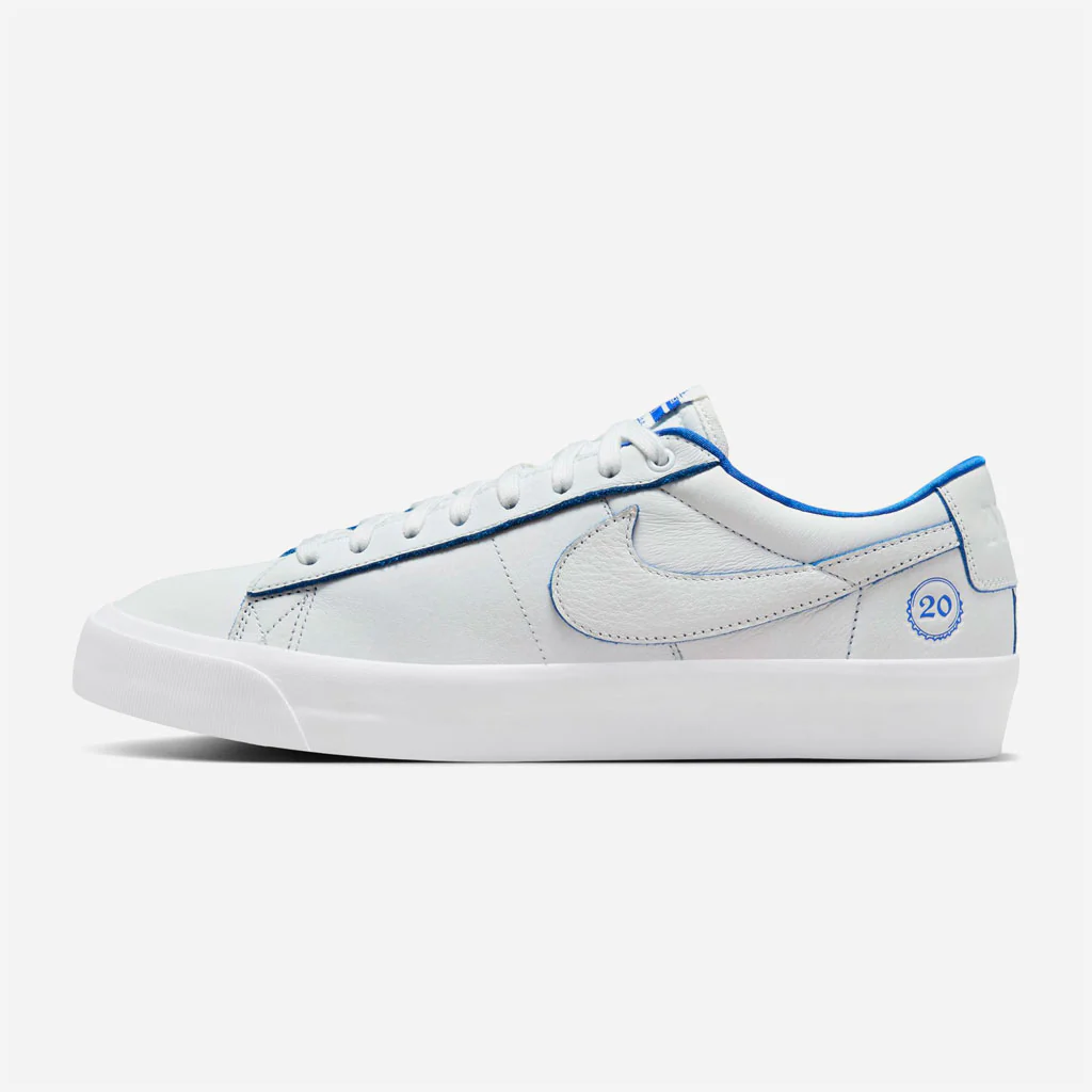 Sans effort, mais jamais basique. Cette édition de la Blazer Low Pro GT célèbre 20 ans de collaboration avec le skateur emblématique Grant Taylor. Fabriquée en cuir de première qualité qui s’assouplit avec l’usure tout en restant durable. Pour marquer cette étape, nous avons inclus des graphismes et des décalcomanies spéciaux. La Blazer a traversé les décennies – il est temps de découvrir pourquoi. La tige en cuir vieillit à la perfection. Deux jeux de lacets sont inclus pour un look personnalisé. L’amorti Air Zoom réactif procure une sensation de vitesse à chaque pas. La construction vulcanisée associe harmonieusement la semelle et la tige pour une sensation de souplesse et de rodage. La semelle extérieure en caoutchouc translucide avec motif à chevrons offre une adhérence durable et révèle un design de chausson d’édition spéciale.