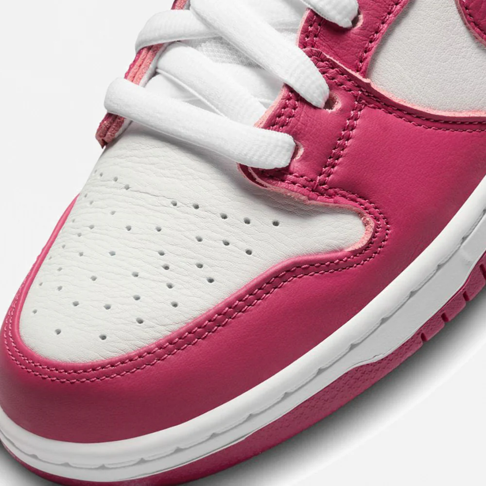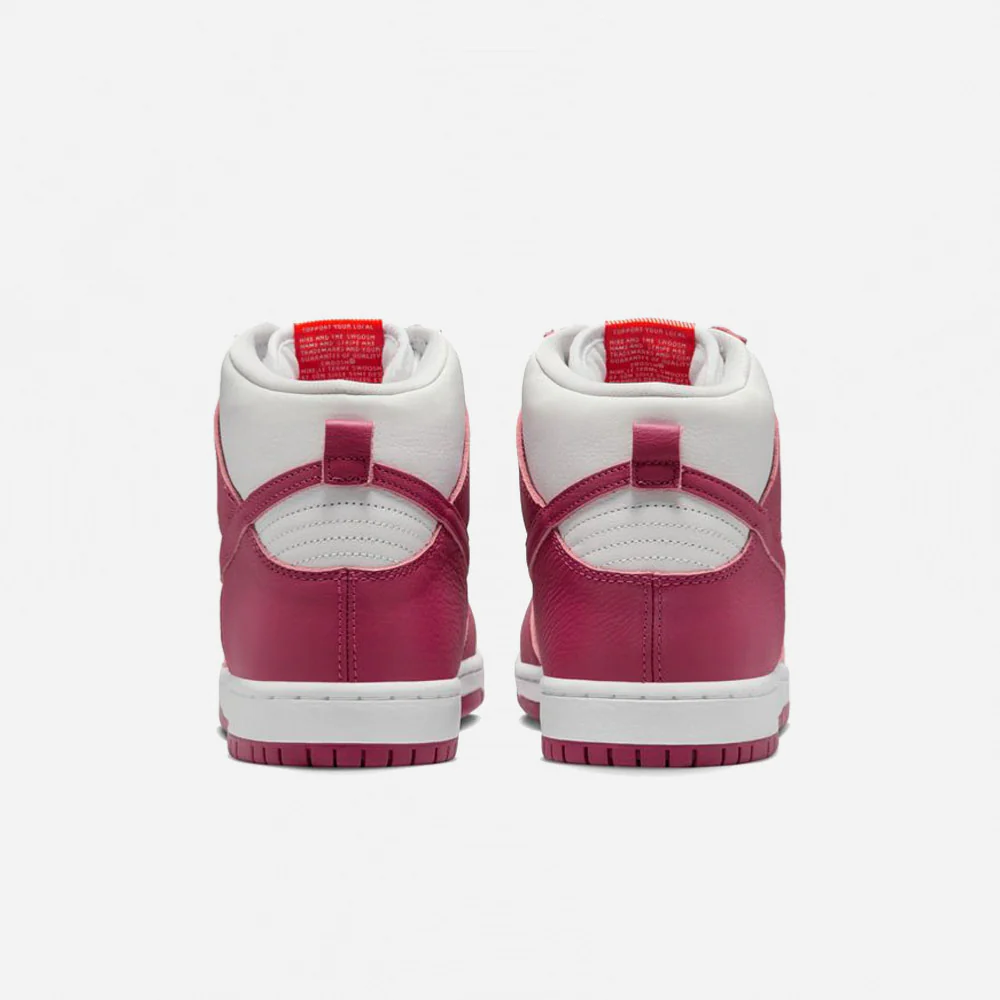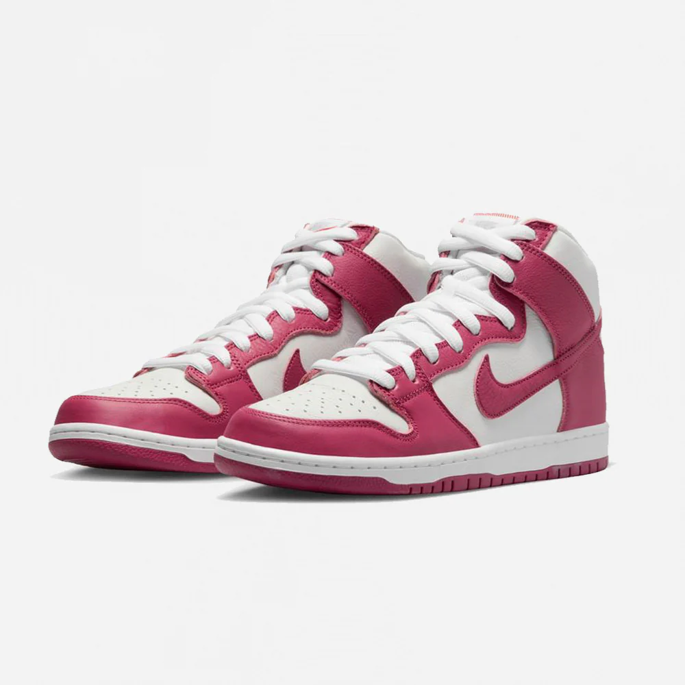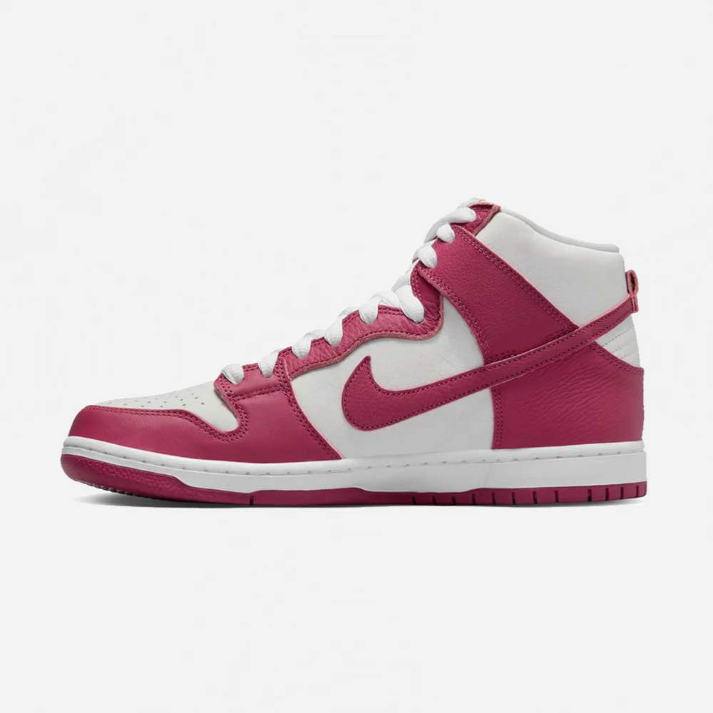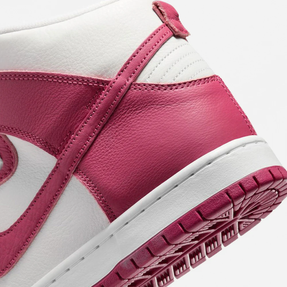 Cette Dunk Hi fais partie du Pack Sweet Beet, elle présente une tige en cuir blanc avec des superpositions en cuir betterave, ainsi que des lacets blanc.