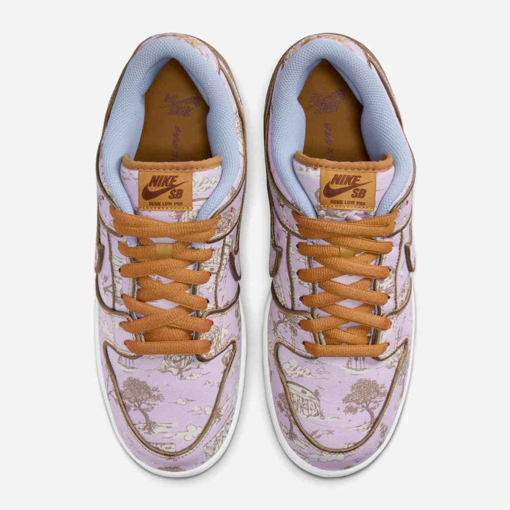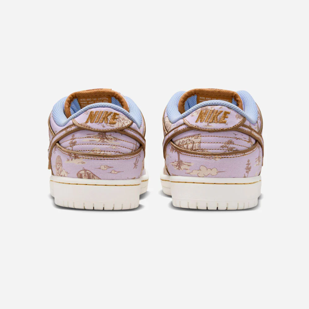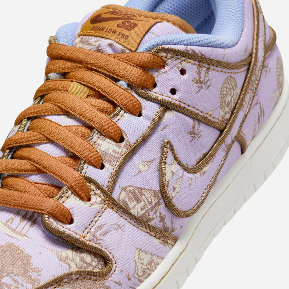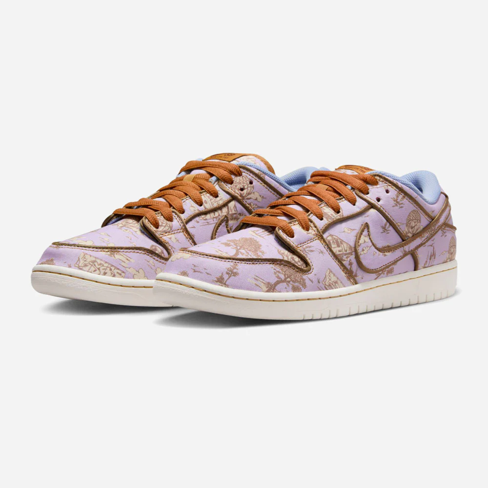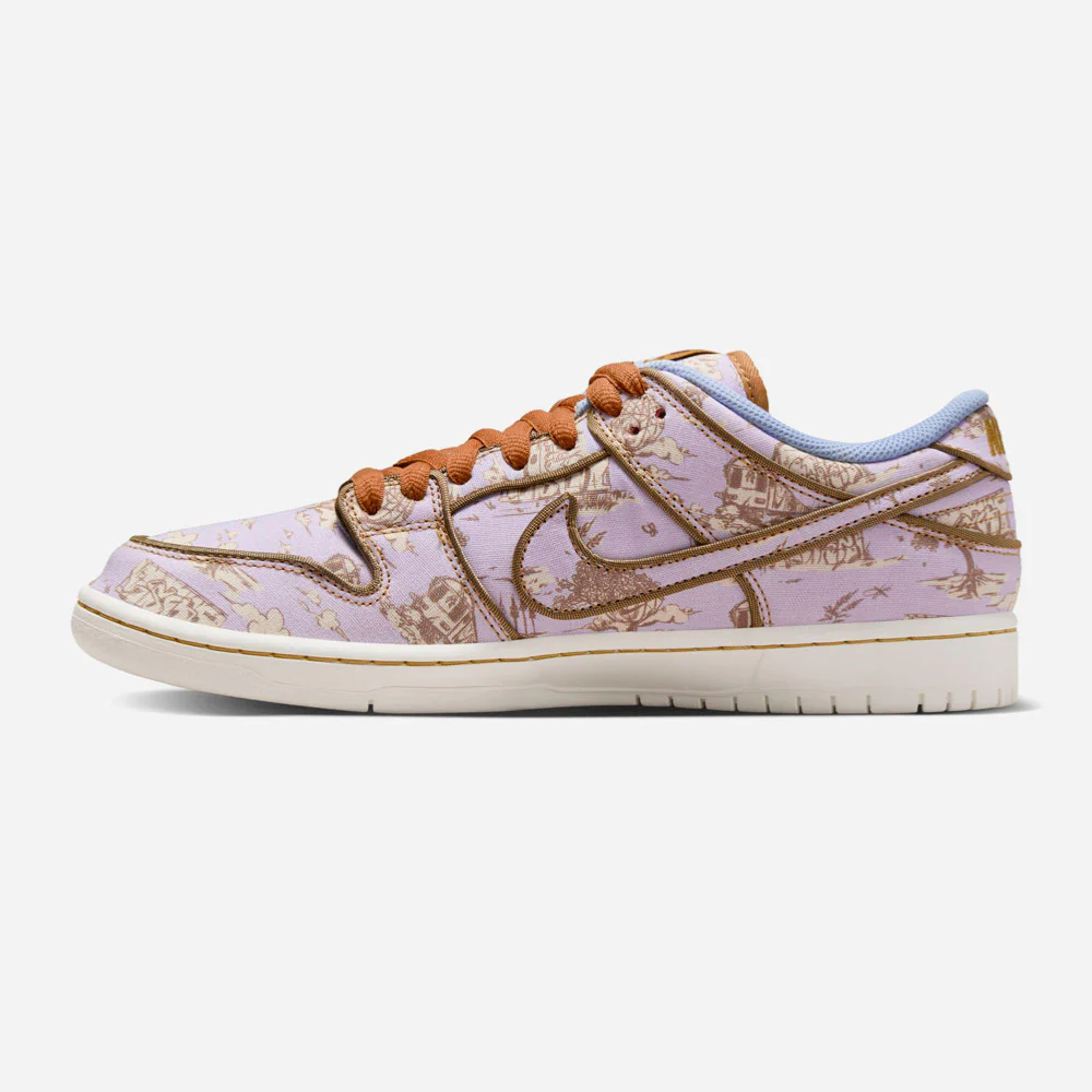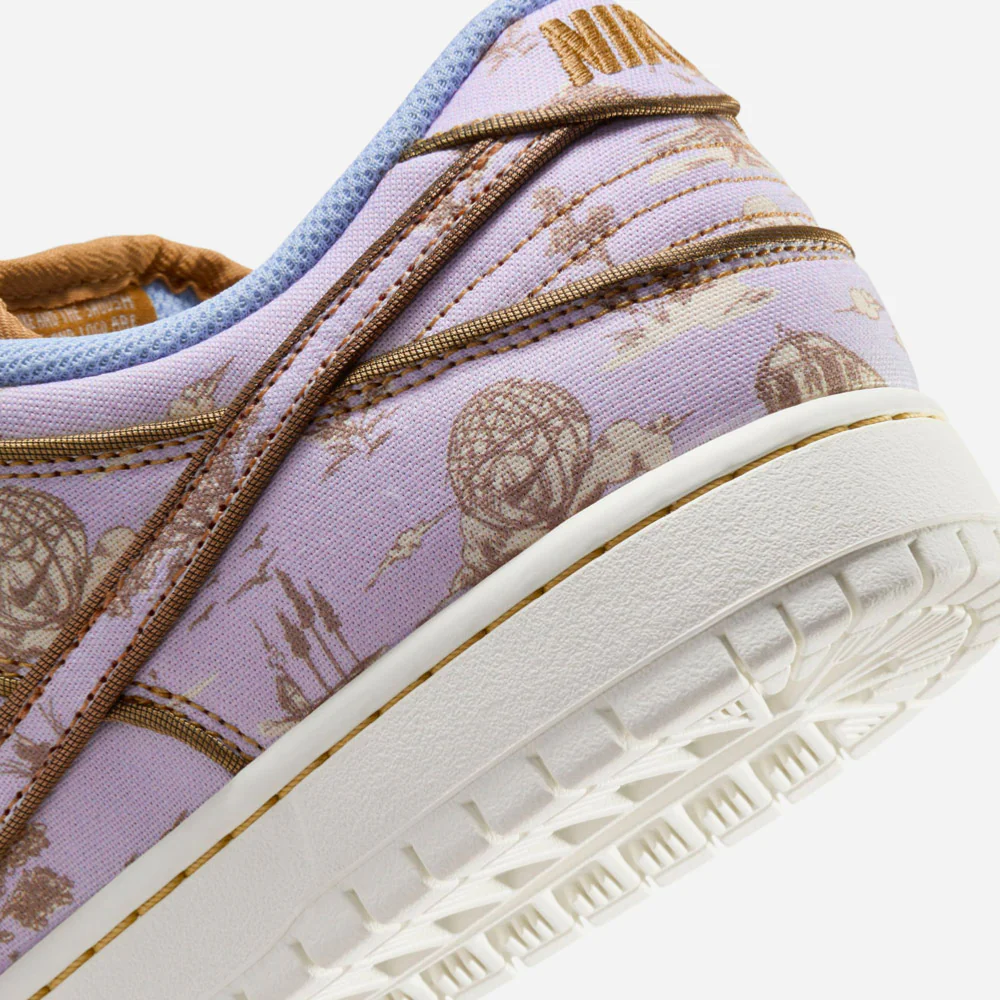 La Dunk Low « City Of Style », également nommée « Pastoral Print », célèbre Paris, qui accueillera les prochains Jeux Olympiques d’été, mettant en avant le skateboard par le biais de ses diverses épreuves. Nike dévoile une nouvelle édition de la Dunk Low, honorant Paris en combinant son héritage pastoral et son impact sur la mode mondiale. Cette édition premium et unique est caractérisée par une robe textile ornée d’une base gris clair aux accents mauve en contraste avec des motifs dorés inspirés des graffitis. Les contours des empiècements et des lacets sont assortis dans une nuances de marron associés à une doublure interne bleue ciel et d’une semelle blanche. Ce design culte de 2002 est complété par la technologie Zoom Air assurant ainsi un amorti sans faille.