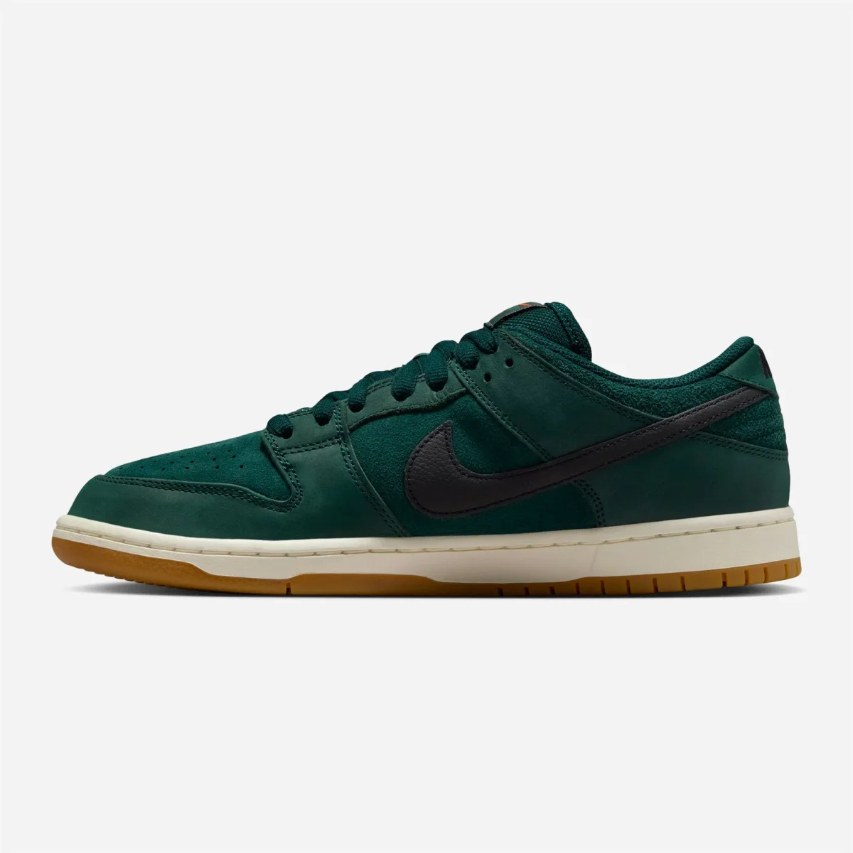 La Nike SB Dunk Low “Deep Fir” allie élégance et performance avec sa conception en cuir nubuck vert sapin et ses accents noirs texturés. Sa semelle intermédiaire crème, associée à une semelle extérieure gum, assure une adhérence optimale. Les touches orange vif sur la languette et les lacets apportent une note dynamique à ce modèle raffiné. Dotée d’une semelle Zoom Air pour un amorti réactif et d’un col rembourré, cette Dunk garantit un maintien confortable idéal pour le skate.