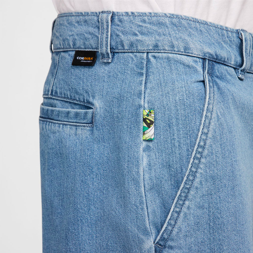 Pantalon Nike SB El Jeano en ardoise cendrée et blanc. Doté d’une coupe régulière et d’une jambe large, ce pantalon Nike SB est fabriqué à partir d’un mélange de denim CORDURA®. Doté d’une ceinture à passants, d’un cordon de serrage intérieur réglable et d’une braguette zippée à bouton unique, ce jean Nike SB bleu ardoise est équipé de deux poches latérales, de deux poches arrière, d’un logo brodé et d’une étiquette drapeau tissée.