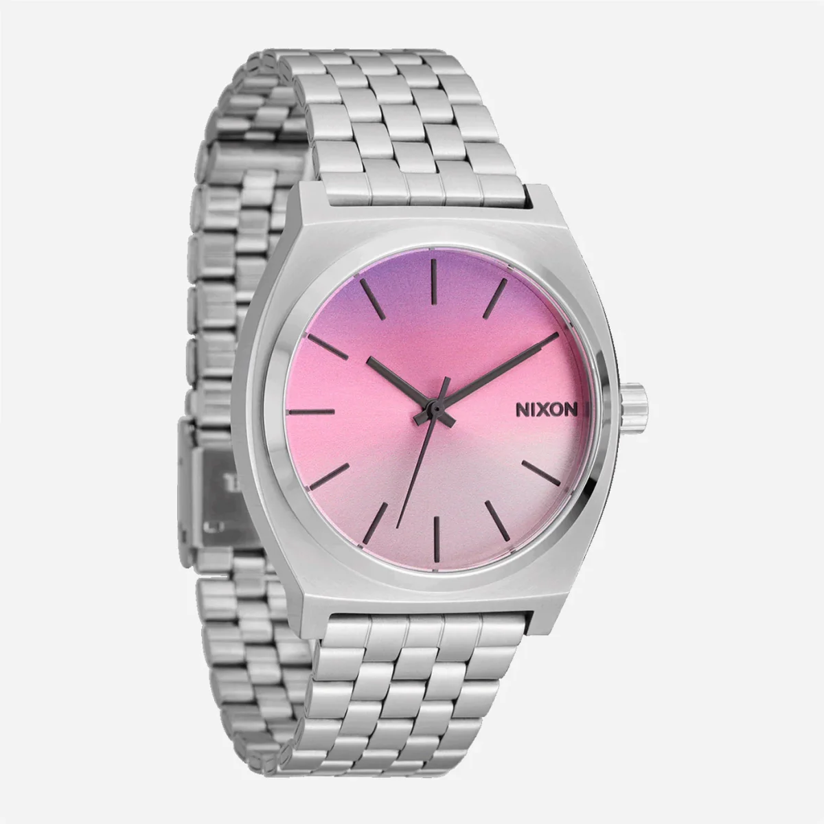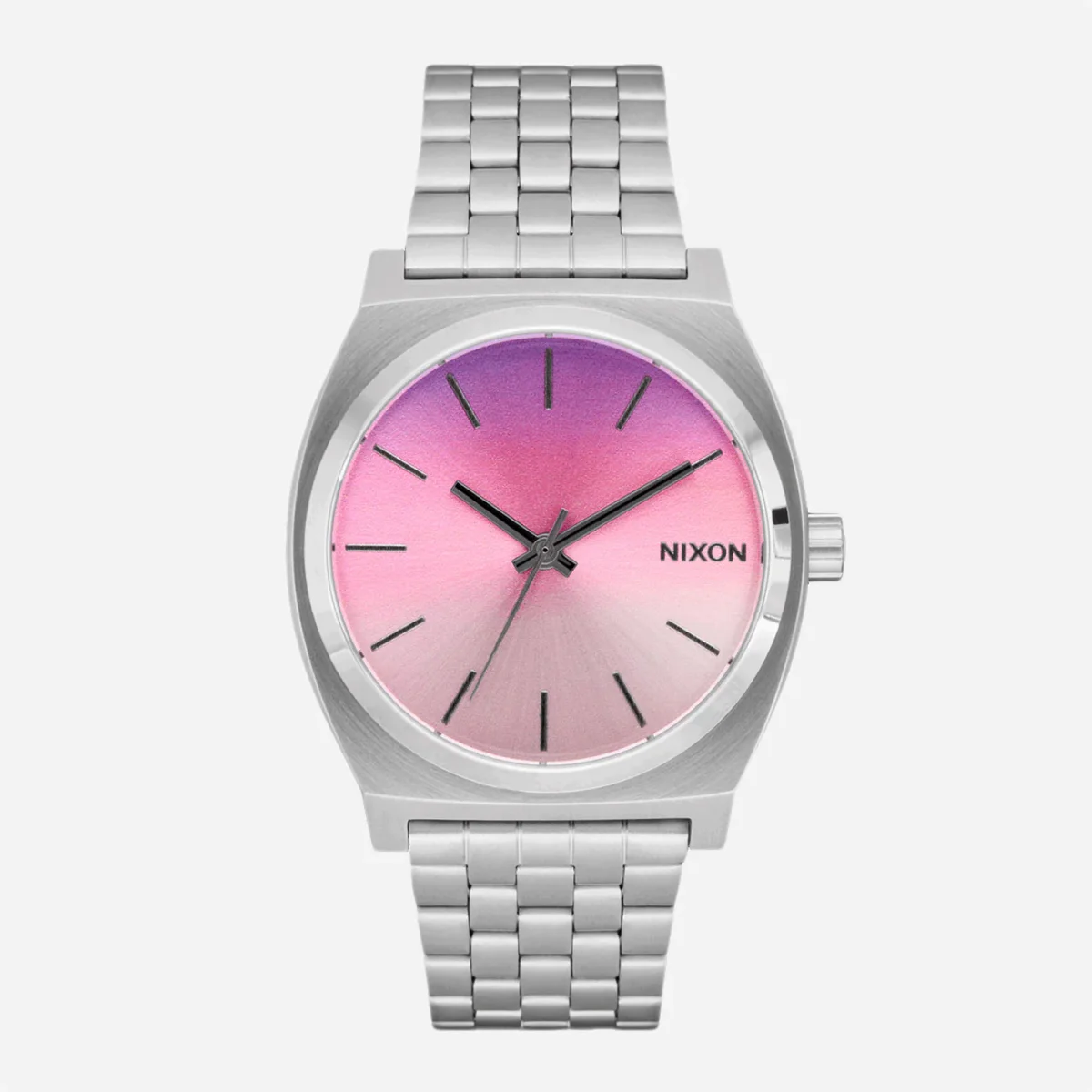 Icône du minimalisme, la Nixon Time Teller se distingue ici par son cadran dégradé rose et violet qui évoque les nuances d’un lever de soleil. Son boîtier et son bracelet en acier inoxydable argenté apportent robustesse et élégance, tandis que le design épuré en fait une montre intemporelle et polyvalente. Étanche jusqu’à 100 mètres, équipée d’un mouvement japonais et d’un bracelet ajustable à maillons, elle incarne l’équilibre parfait entre style moderne et fonctionnalité durable.