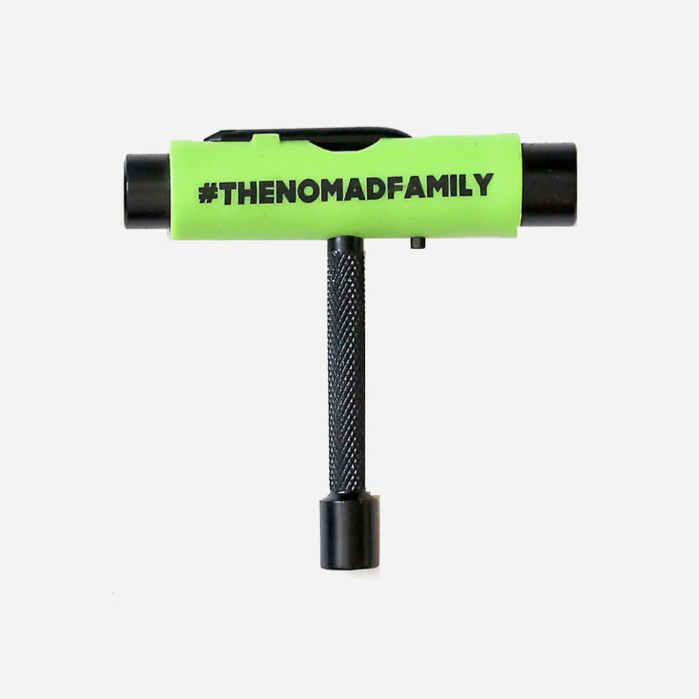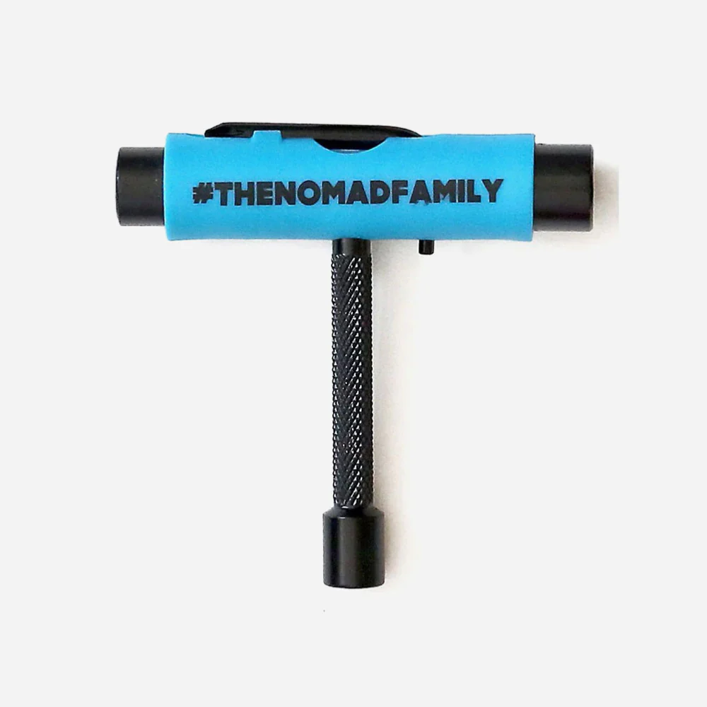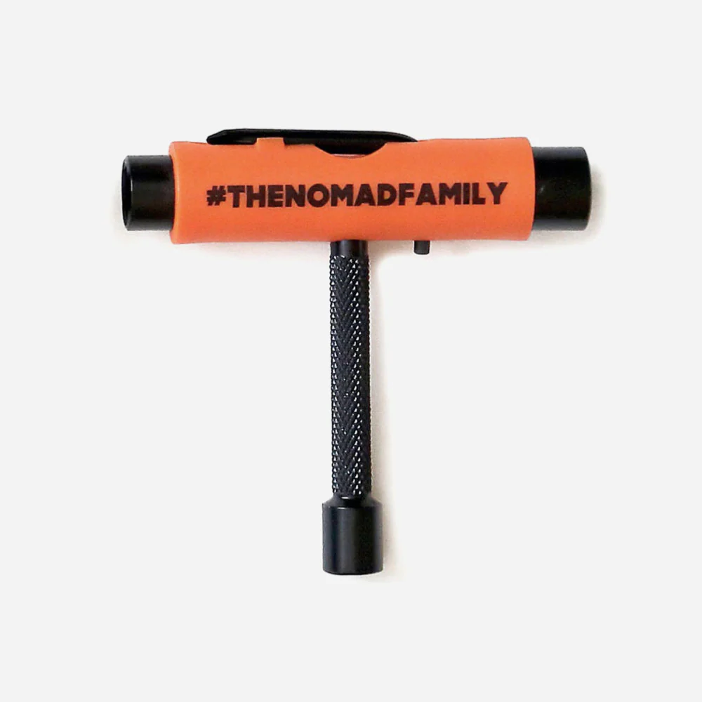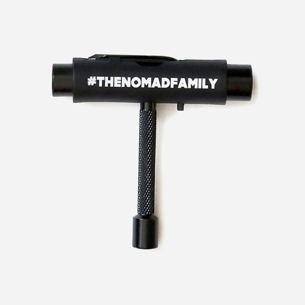 NOMAD SKATEBOARDS – T-TOOLOutil complet pour monter, démonter et régler votre skateboard. En forme de T, il contient une clef pour les boulons ds kingpin, une clef pour les boulon d’axes et une clef pour le boulon des vis. Associé à une clef amovible avec un coté vis cruciforme et l’autre vis allen.