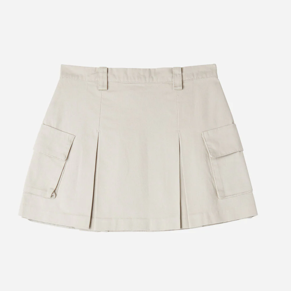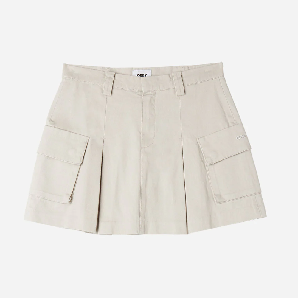 Mini jupe cargo plissé, fermeture à crochet caché sur la devant logo Obey brodé ton sur ton sur le rabat de la poche