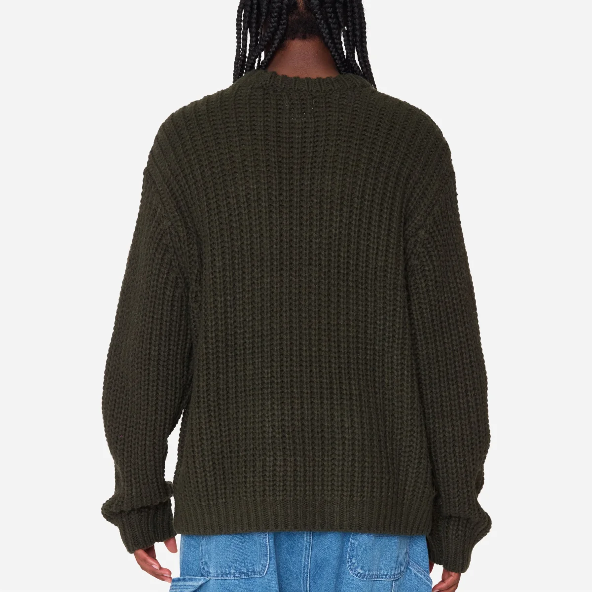Le Bold Chunky Sweater d’Obey est un pull oversize tricoté en grosse maille texturée, offrant à la fois confort et style. Sa coupe ample et décontractée se combine à une teinte vert foncé « Rosin », parfaite pour un look automne-hiver intemporel. Minimaliste mais affirmé, il se distingue par son logo Obey brodé sur la poitrine, ajoutant une touche discrète de branding. Idéal à porter seul ou superposé, il incarne l’esthétique workwear et streetwear chère à Obey.