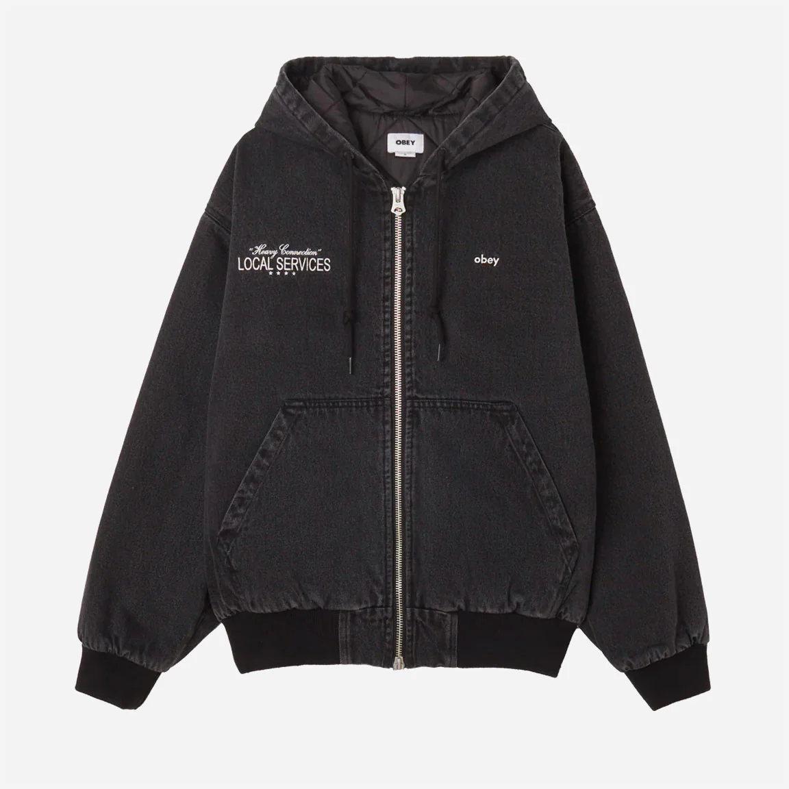 Dotée d’une doublure matelassée et d’une isolation en polyfill, la veste OBEY – LOCAL SERVICE ZIP UP HOOD – Faded Black présente un logo brodé bien visible sur la poitrine gauche et des broderies artistiques sur la poitrine droite et au centre du dos. Les poignets et les ourlets côtelés en coton lycra ajoutent une touche de style et de confort. Complétée par un drapeau d’obéissance, cette veste est parfaite pour ceux qui veulent afficher leur amour de la marque.