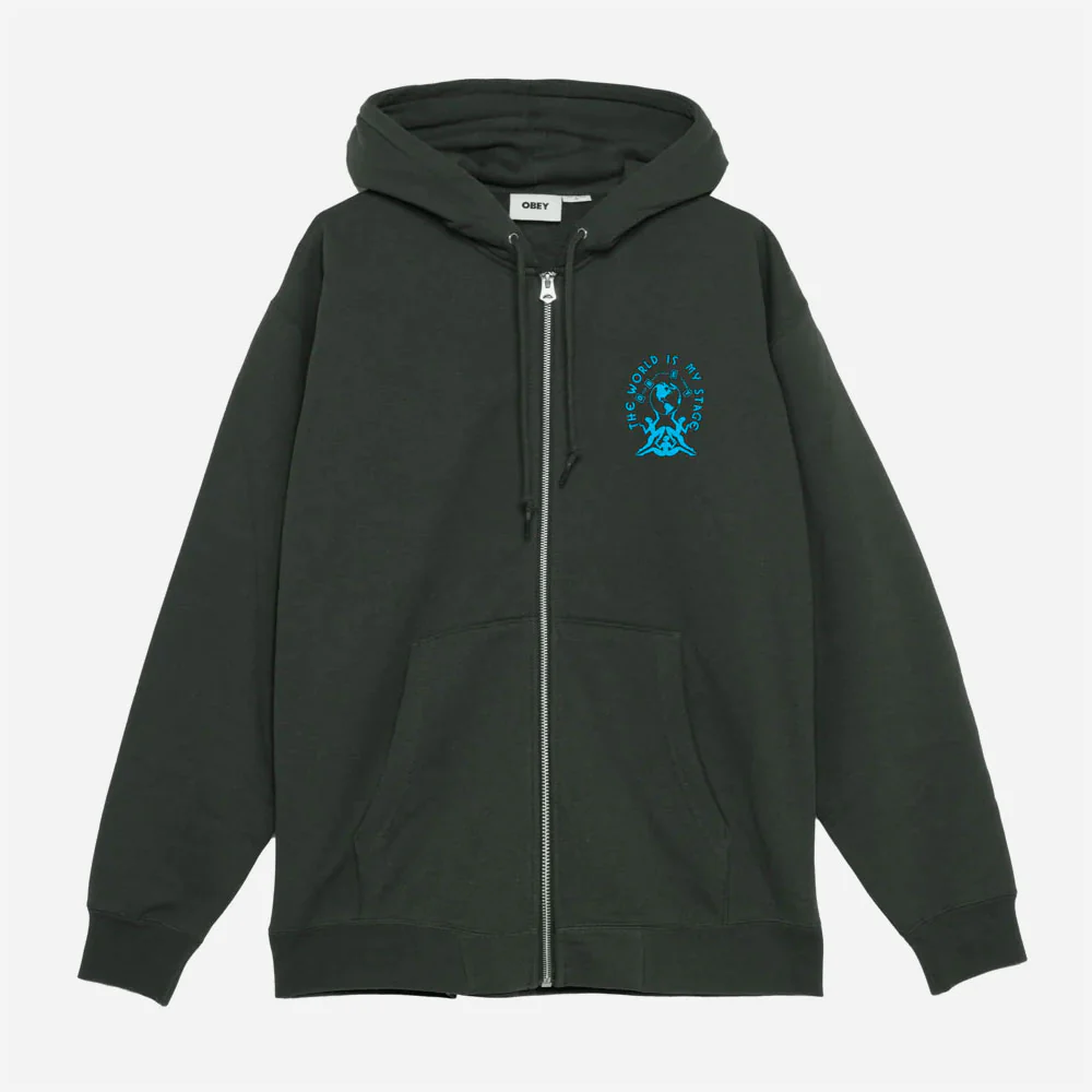 Sweat zippé Obey, coupe droite ample, fabrication en coton. Visuel sérigraphié sur l’avant et dans le dos