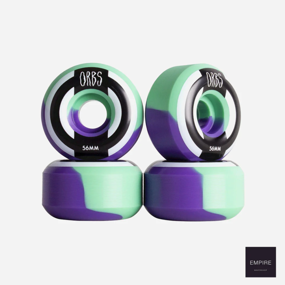 Jeu de 4 roues Welcome Orbs pour skateboard, fabriquées en uréthane dure, forme Full Round, slide plus facilement surtout en street. formulation anti flat-spot. Face extérieure