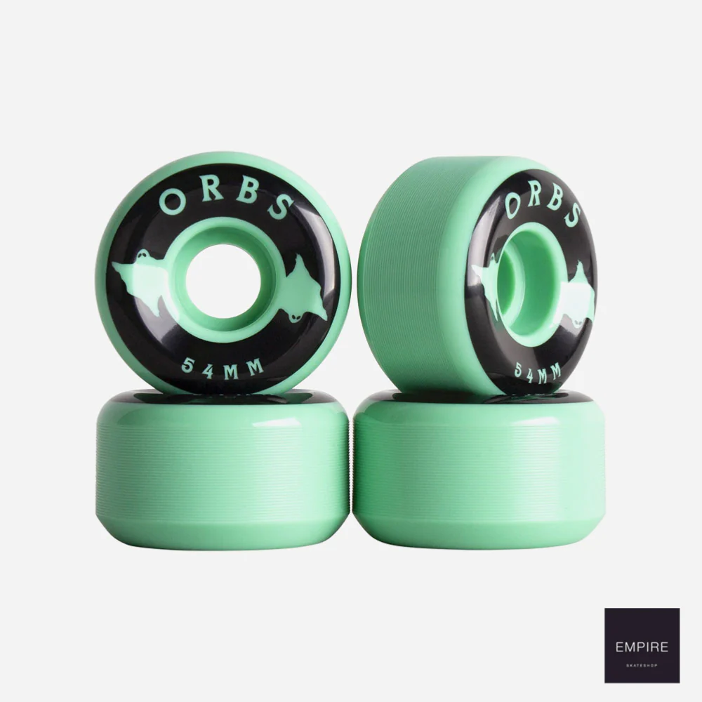 Jeu de 4 roues Welcome Orbs pour skateboard, fabriquées en uréthane dure, forme conique, slide plus facilement surtout en street. formulation anti flat-spot. Face extérieure sérigraphiée.