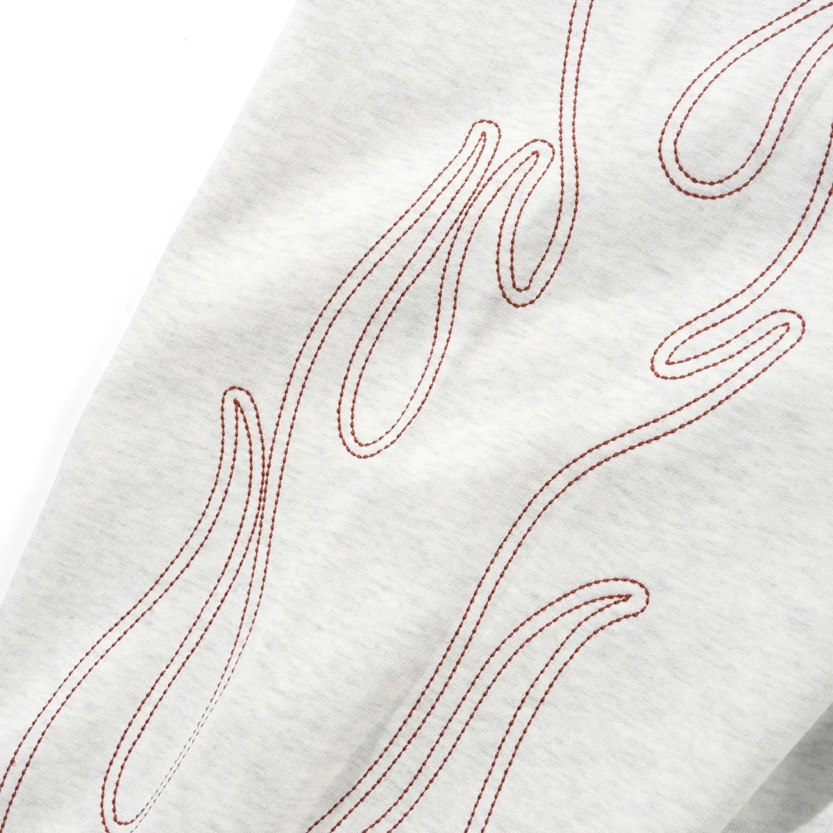 • Détails Incendiaires : L’originalité de la pièce réside dans ses superbes motifs de flammes s’étirant le long des deux jambes, réalisés via une broderie directe au fil rouge contrastant.